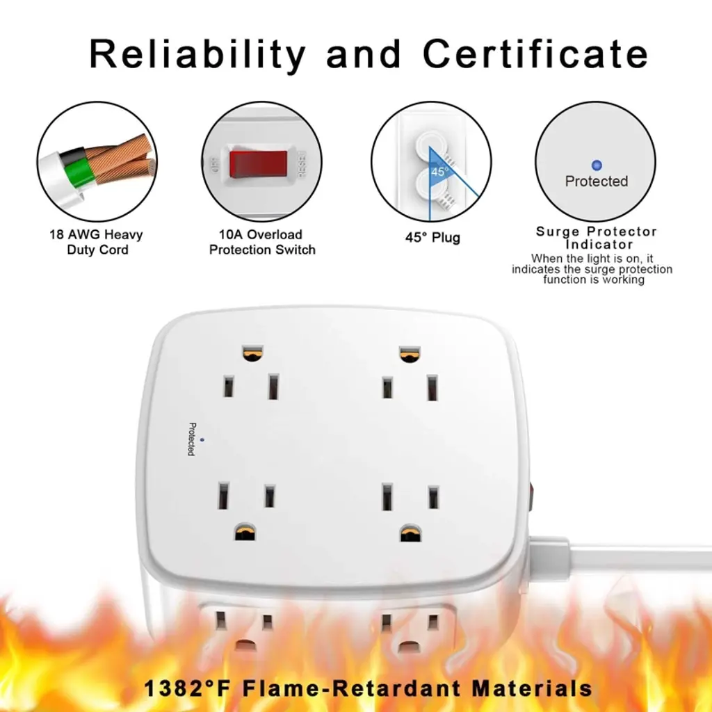 Discover this amazing 6 Ft surge protector power strip! It features 8 widely - spaced AC outlets and 4 USB ports, allowing you to power up to 12 devices at once. The 3 - side design with 1.8 - inch spacing between AC outlets ensures that plugs won't cover each other, making it suitable for all kinds of equipment. Certified with RoHS, FCC, and ETL, it offers multi - safety protection including overload, short - circuit, and over - voltage protection. The 45° flat plug and 6 - foot power cord provide flexibility and easy installation in tight spaces. Whether you're at home, in the office, or in a college dorm, this power strip is a must - have for keeping your devices powered safely and conveniently.