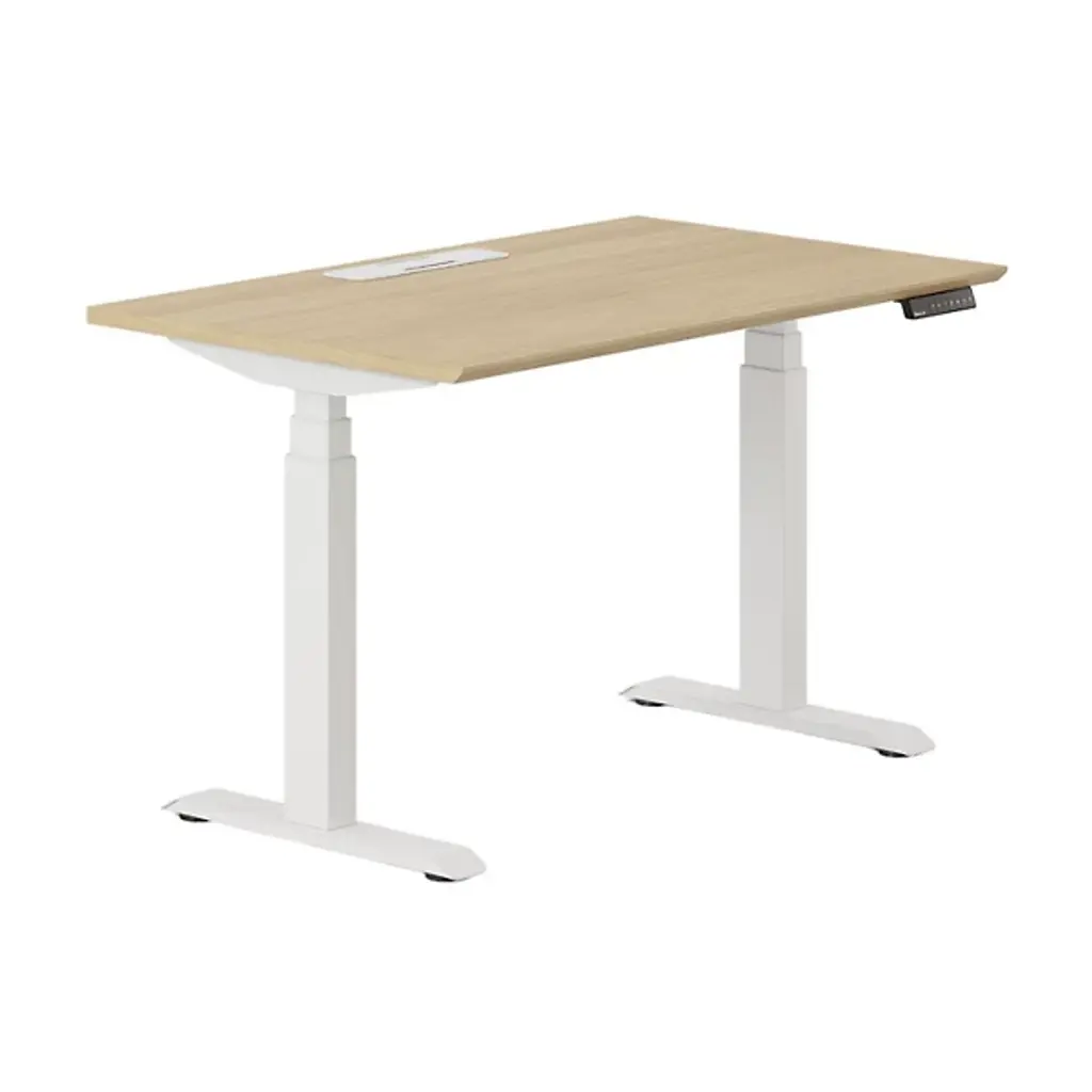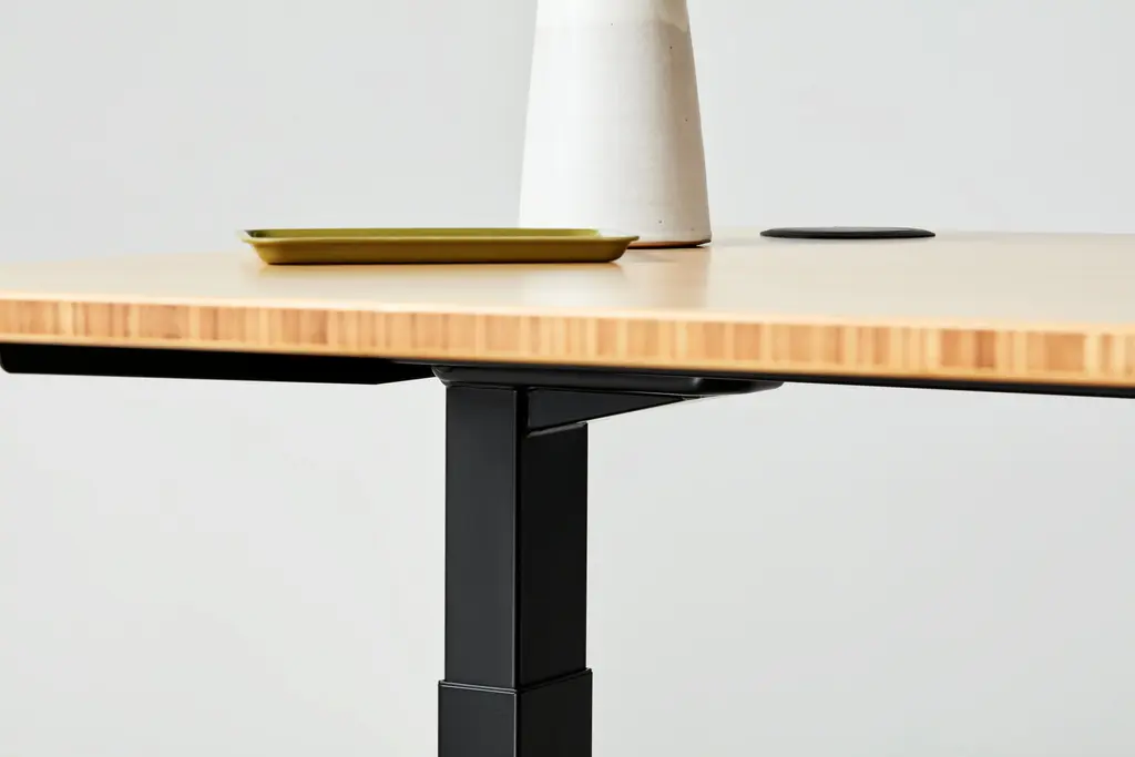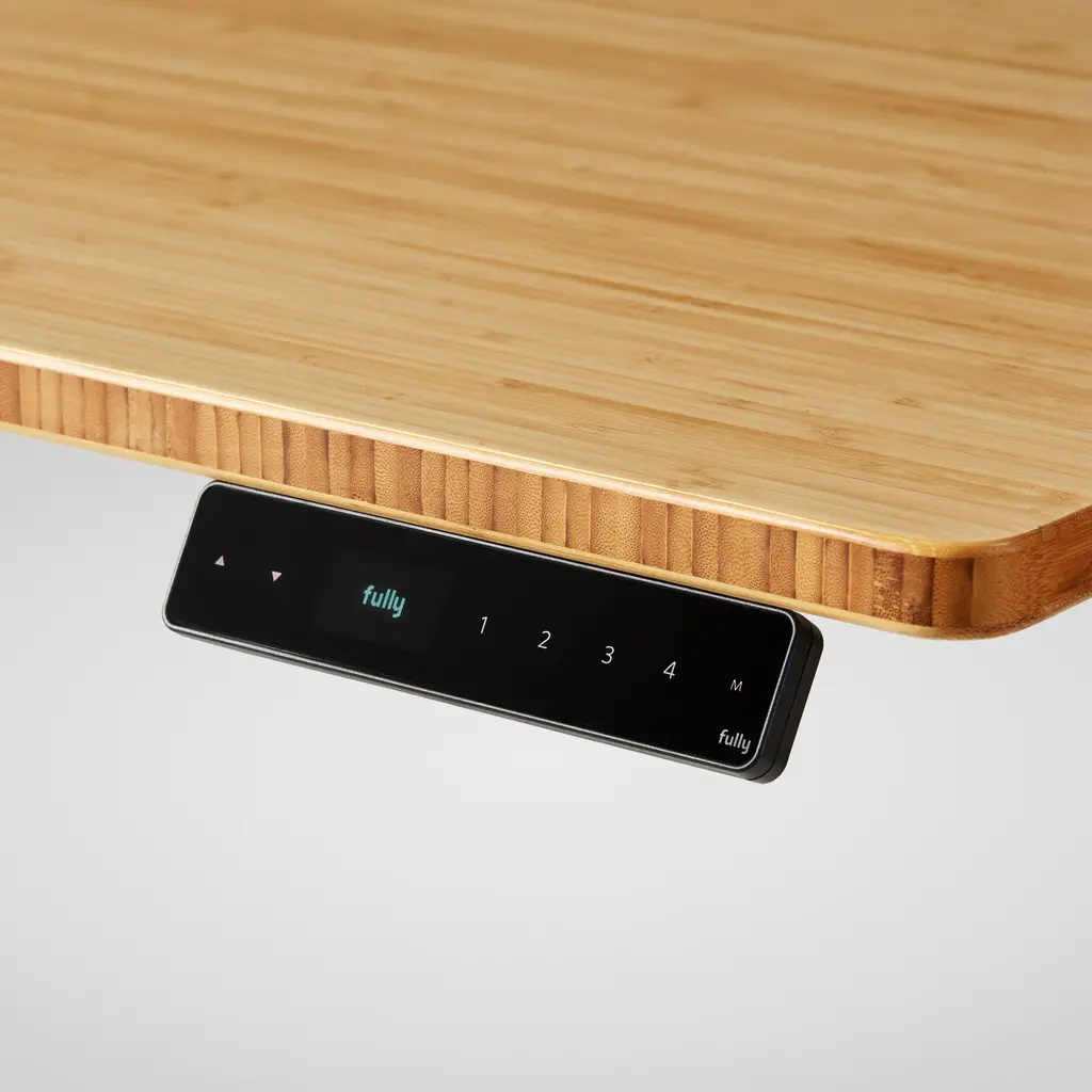 Tap into your flow with the all-in-one Jarvis Standing Desk. Designed to promote wellness and movement, Jarvis encourages a variety of sitting and standing positions throughout the workday with a customizable setup. Easily adjust the height of the bamboo tabletop with the push of a button on an up-down touch pad or an OLED programmable handset. With the option of a powered grommet, you can easily charge devices right on your desktop. This is the authentic Jarvis Standing Desk by the Oregon-based company Fully. Fully is a Certified B Corporation dedicated to enhancing the quality of your work and workspace with high-quality design. With an eye toward making a positive impact on customers, as well as the planet, Fully’s products are responsibly produced and packaged. Jarvis’s tabletop is made of bamboo, chosen both for its natural beauty and rapid renewability. The bamboo, which releases 35% more oxygen than an equivalent stand of trees, is grown without pesticides or fertilizers. When the plant is fully mature in just five years, it’s harvested by hand to preserve the root structure. Plus, Jarvis is shipped in 100% recyclable and EPE-free packaging. If selecting the grommet option, the white Jarvis Desk will ship with black grommets installed, and white grommets will ship separately.
