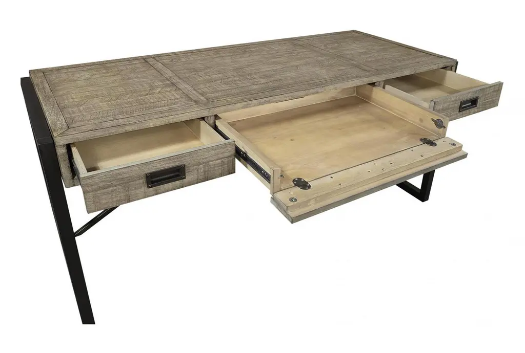 Joplin 70" Grey + Metal Computer Desk With 3 Drawers