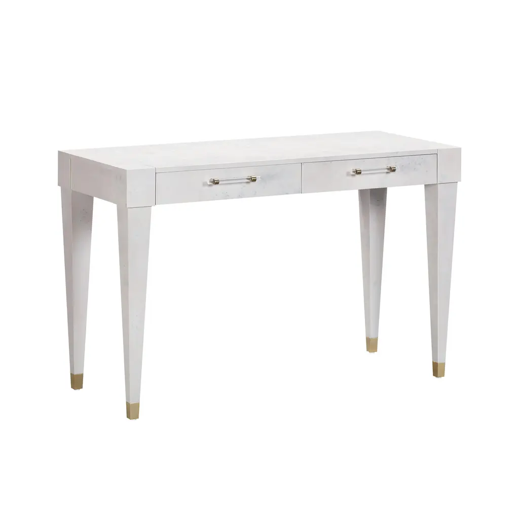 With its sleek lacquered finish and golden accents, the Jordan instantly upgrades a space in the glamorous style of Hollywood Regency decor. There’s a romantic touch of the old world in its Chow feet and decorative wood-cut detailing, which gives its pair of drawers elegant, slightly curved edges. The versatile piece can be employed as a compact desk or console table, or even dressed up as a bedroom vanity topped with a mounted mirror. Pull up a seat with panache or use it as a fancy display for vases, lamps, or objets d'art.