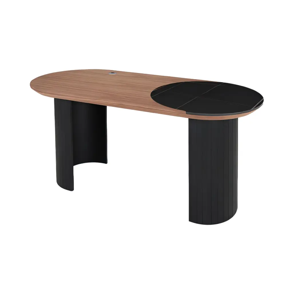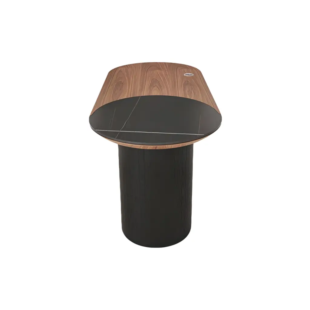 The sophisticated and stylish Jude Office Desk in Walnut and Black is a fusion of functionality and elegance. The desk showcases a sleek and contemporary design that effortlessly blends with any office decor. The Jude Office Desk also features a black marbled ceramic finish that exudes a sense of luxury and refinement, adding a touch of opulence to your work environment.