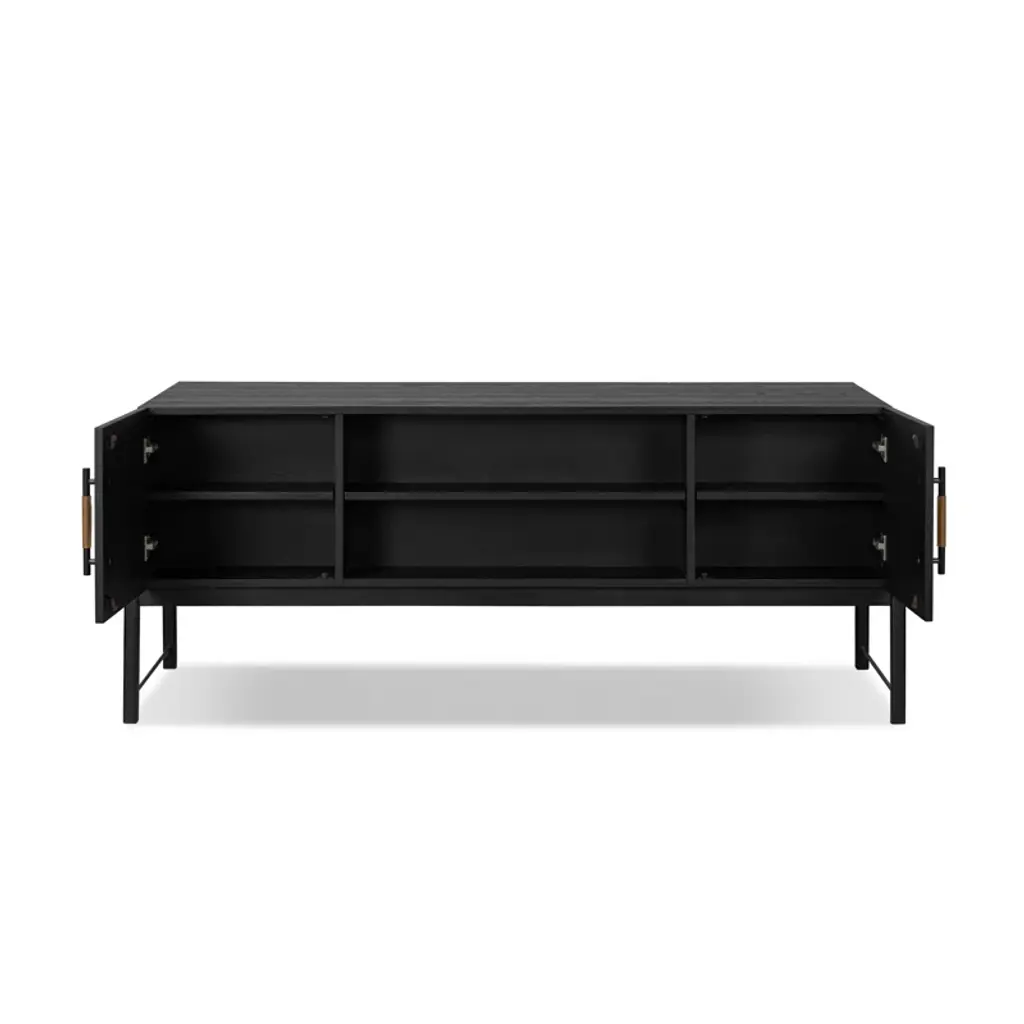 Accented with iron hardware wrapped in tan top-grain leather, light-finished oak crafts shapes a clean silhouette. Vary-sized drawers offer plenty of storage, while outset legs bring a design-forward touch.
