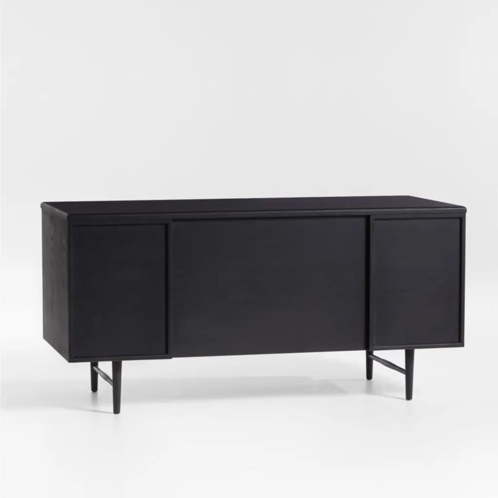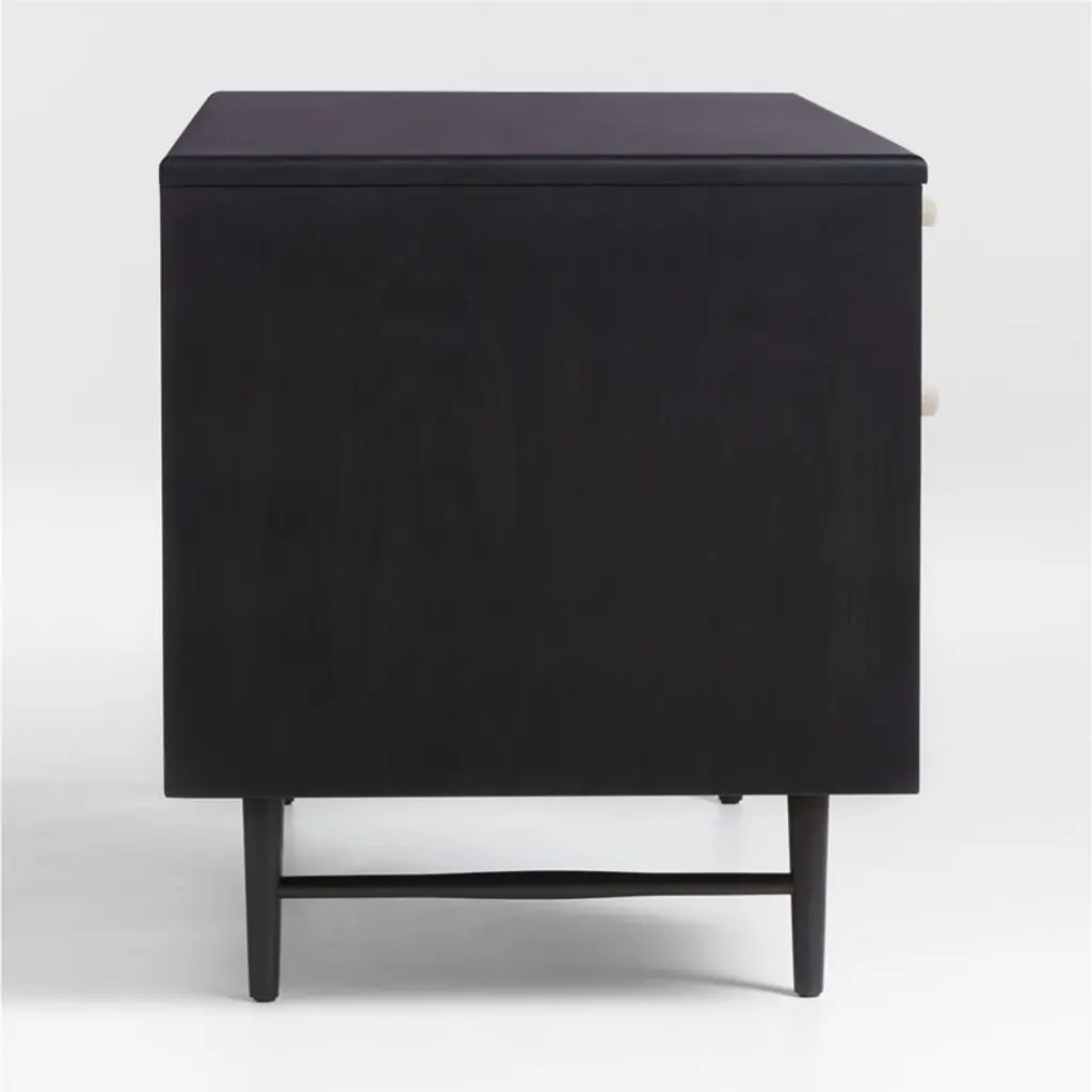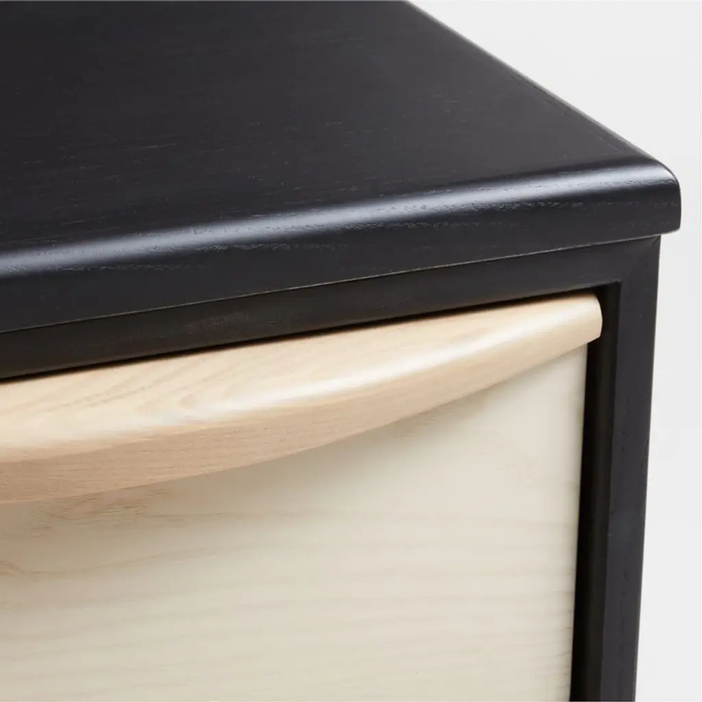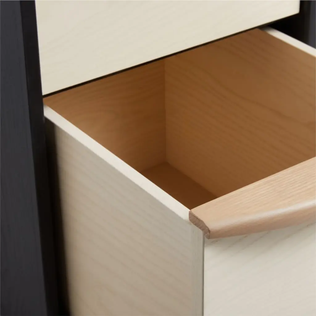 French modern meets Scandinavian mid-century in the stylish mix of our Kaufman desk. The combination of finishes on the ash desk adds graphic interestblack bringing the streamlined frame into sharp silhouette while whitewashed drawer fronts and natural pulls create contrast. We love the pillowed profile of the pulls that add subtle curves to the clean lines. Five drawers provide lots of storage, including one that accommodates letter and legal files. Fully finished, the desk is designed to float in the room for added versatility.