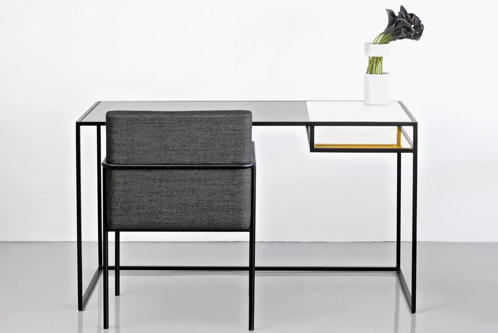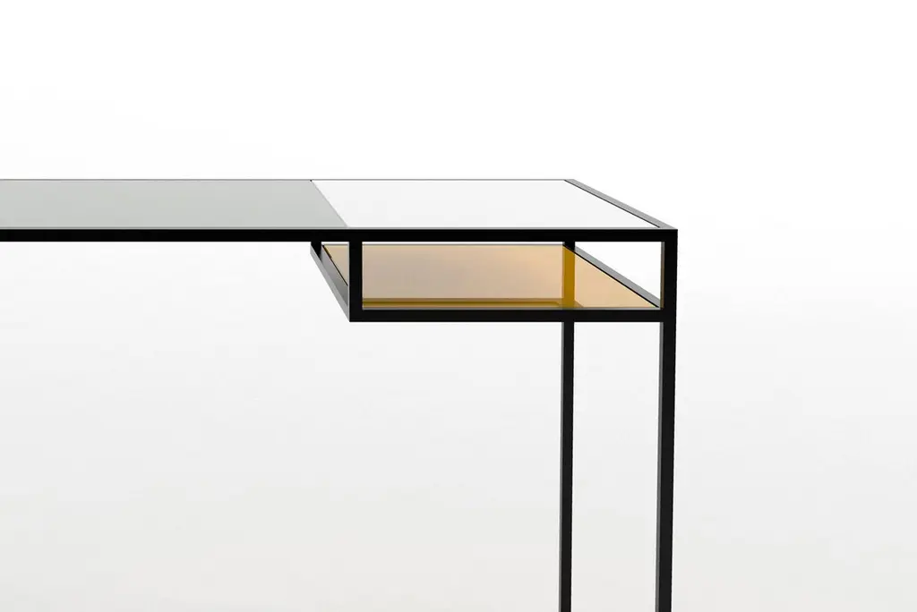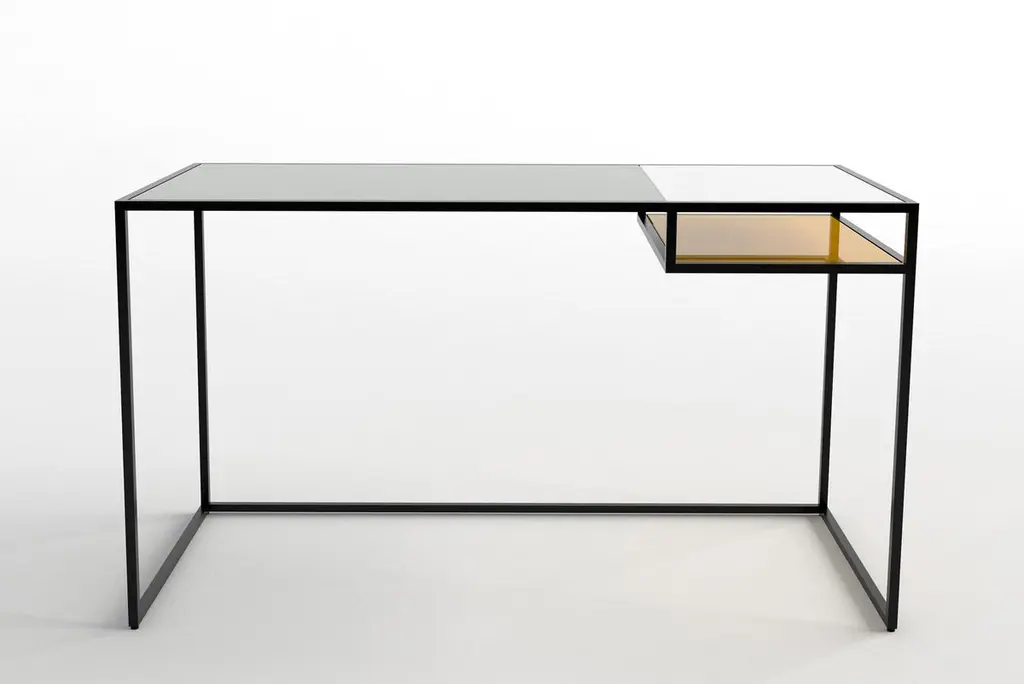 Keys Desk by Phase DesignDimensions: D 55.9 x W 127 x H 73.7 cm. Materials: Spandrel glass top and powder-coated metal.Solid steel bar available in a flat black or white powder coat finishes with spandrel-painted glass. Spandrel glass is available in black, white, gray, and yellow. Powder coat finishes are also available in custom colors. Prices may vary. Please contact us.An extension of the keys family of tables, the Keys Desk is comprised of three separate back painted glass elements that can be custom ordered in combinations of black, white, yellow, and gray. The drop down shelf creates an easily accessible storage surface for all your desktop needs.Autodidact award-winning designer Reza Feiz has always been drawn to the strength in simplicity. Lured to Southern California by its inventive, creative spirit, he quickly discovered his true calling among the vast community of creators and artisans whose skills and ingenuity expertly transform imagination into reality.Inspired by Los Angeles’ iconic landscape and the compelling beauty of the places and spaces he encountered, he envisioned furniture, lighting and tabletop accessories, fabricating them from contemporary materials with the help of a tightly knit coterie of craftspeople.The resulting restrained yet revolutionary pieces have garnered enthusiasm from an international audience.He’s been lauded as “An American designer who influences world design”, a “Style Pioneer” and “One of a group of select young designers who represent the leading edge of discovery in design.” Architectural Digest’s Mayer Rus noted that his “wide-ranging collections make a strong case for the enduring appeal of restrained modern design.” Surface Magazine raved that he “imbues his work with a 21st-century edge. His astute sense of restraint keeps the designs relevant in a constantly evolving industry, without needing to subscribe to trends.”“Reza Feiz imbues his work with a 21st-century edge. His astute sense of restraint keeps the designs relevant in a constantly evolving industry, without needing to subscribe to trends.”