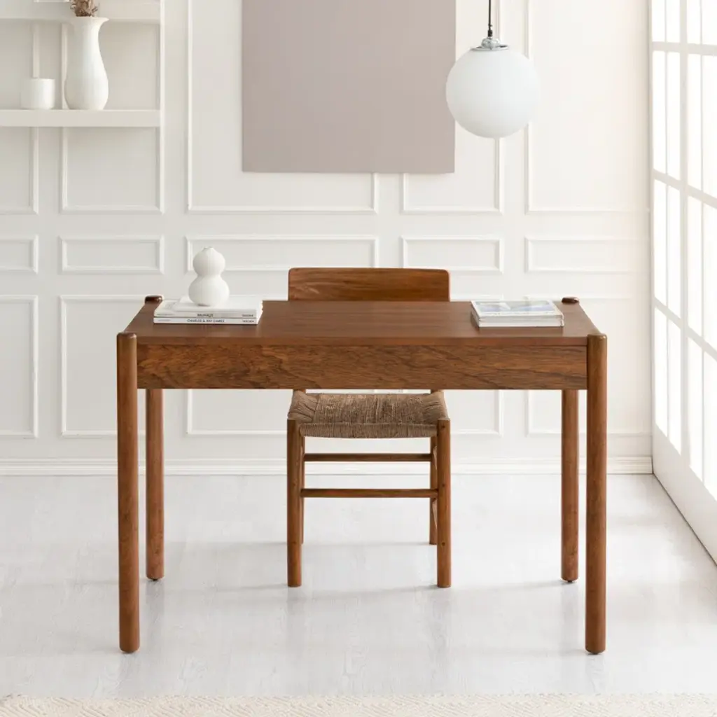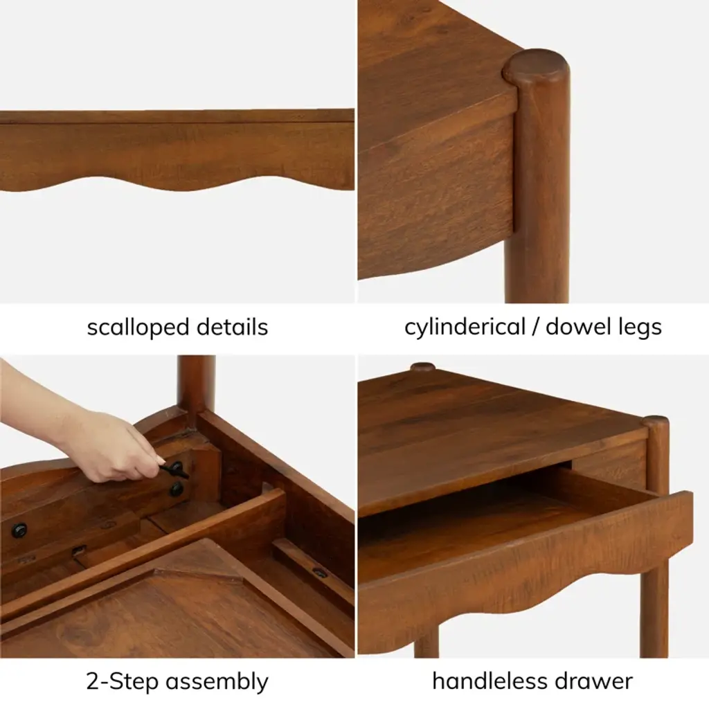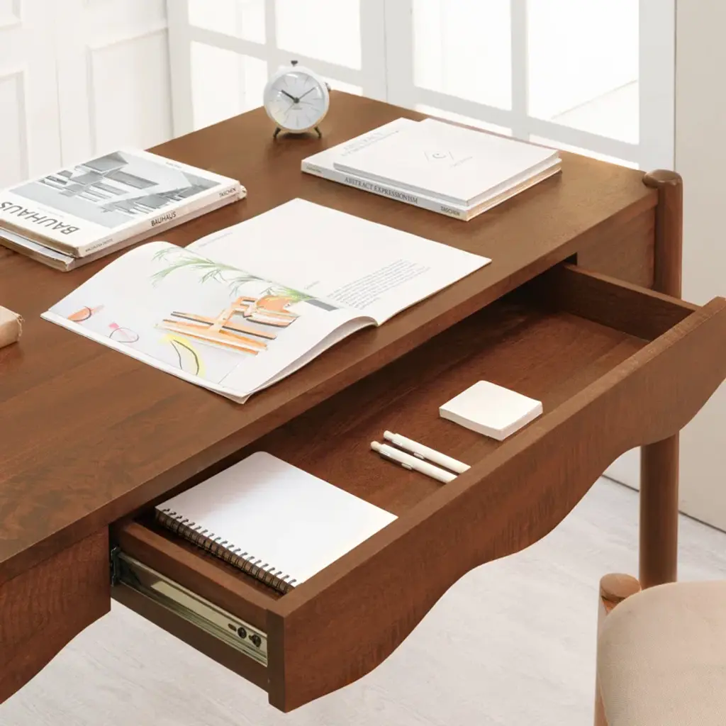 SCALLOPED SILHOUTTE A blend of elegant style & contemporary design - this desk is a design marvel! Featuring rectangular top with scalloped edges on front and sides, it comes with gracefully rounded dowel legs. The spacious tabletop offers ample space for your laptop and books while you can hide away your work essentials in the spacious drawer. Soft edges and clean clines, it assembles easily without any hassle!