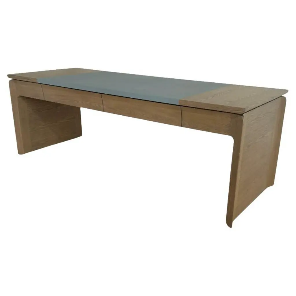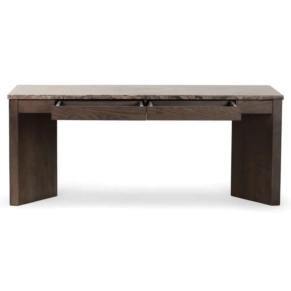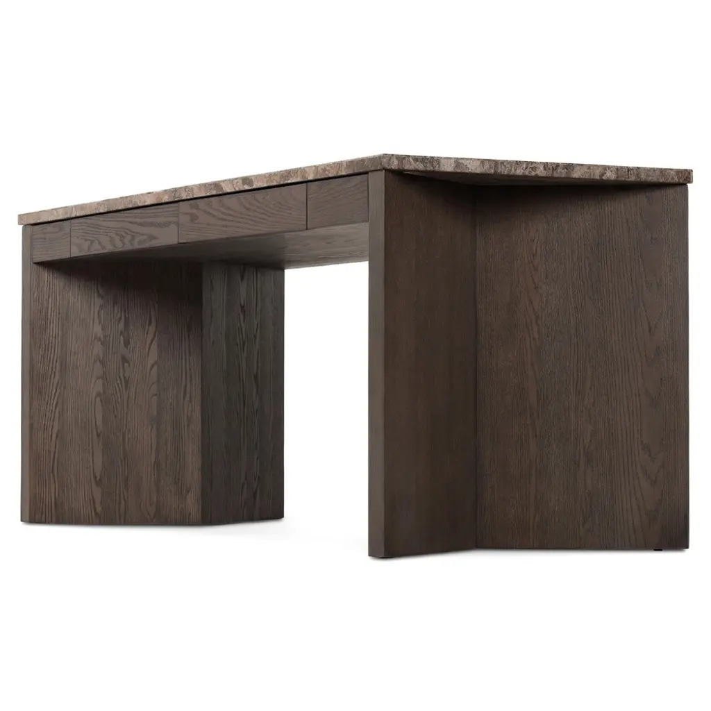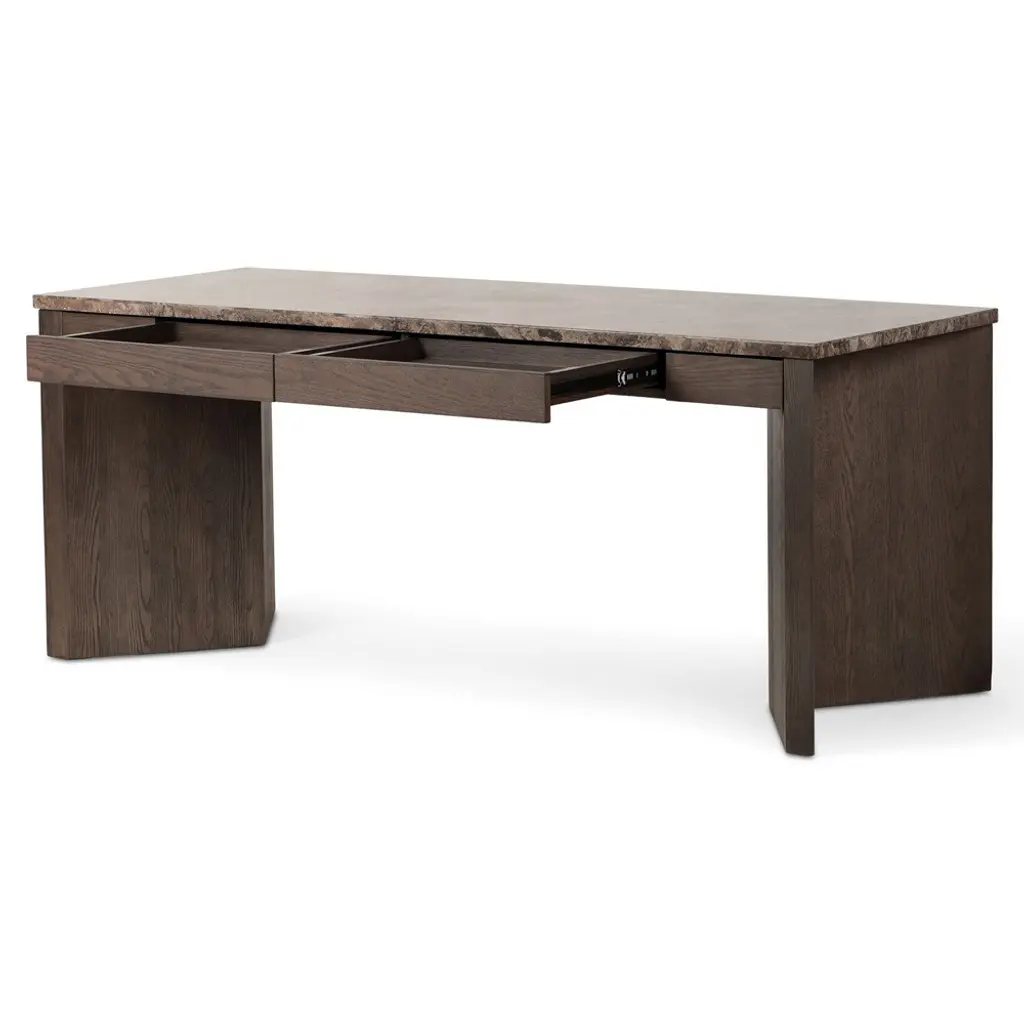 Klement Modern Classic Grey Marble Brown Oak Rectangular Desk
