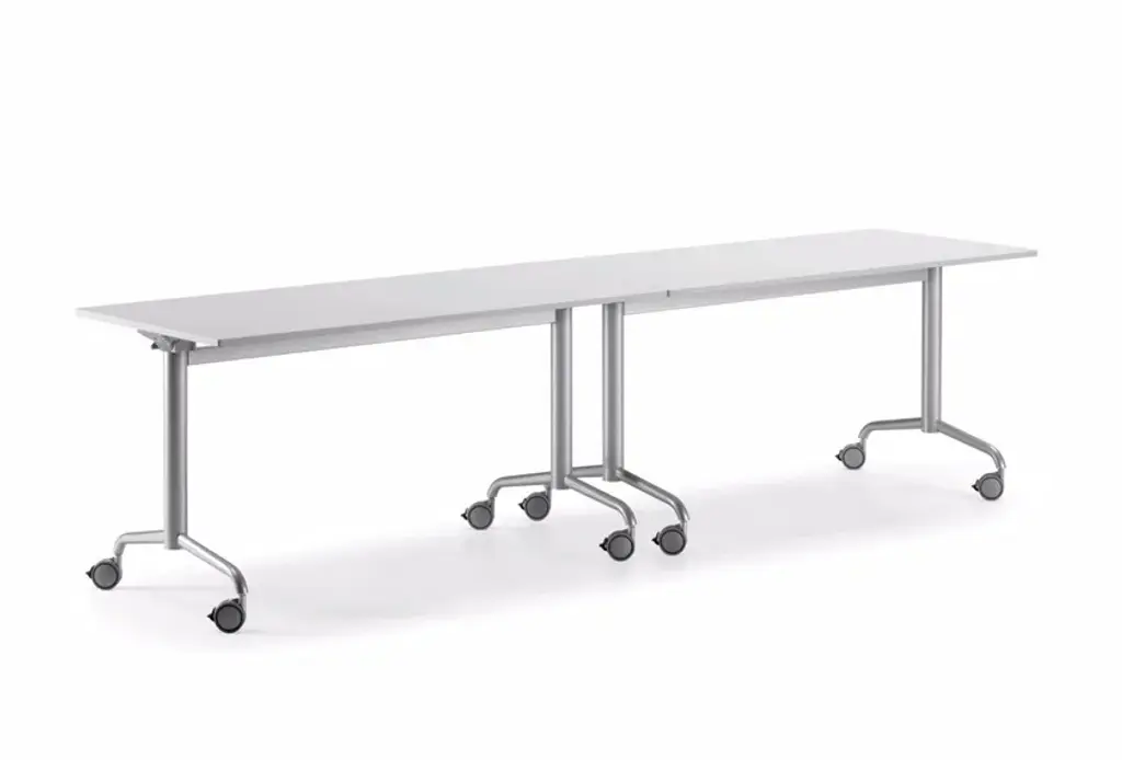 Komby 938 W - Stackable folding MDF bench desk with casters.Komby is a collection of tables:- Folding and/or tilting table. Painted or chromed metal structure. MDF top available in different sizes. Available version with lockable castors. Available version with adjustable height.Ideal for: meeting areas, conference rooms, hotels breefing, teaching areas.Optional: Transport dolly, beech or wenge' tops, connecting hooks, metal or MDF front modesty panel.- Table with metal column and 4 metal spokes painted or chrome.Various measures available for the top and various heights available for the column.Available with MDF or temperated glass top.Available top tilting version.Ideal for: cafes, bars, break areas.Optional: beech or wenge' top.