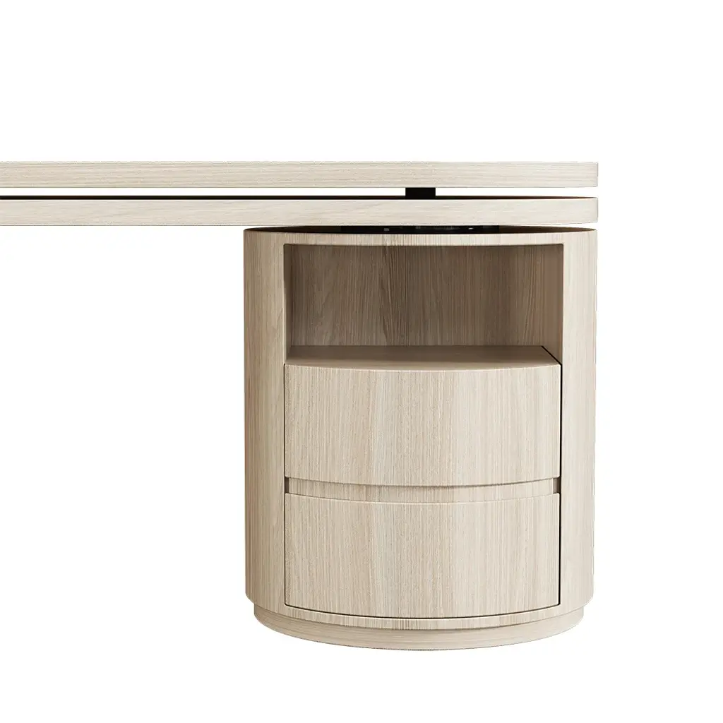 Maximize your workspace with this 60" L-shaped desk featuring revolutionary 360° rotation. Crafted from warp-resistant engineered wood in modern washed white finish. Features 2 smooth-gliding drawers and open shelving for essential storage. Perfect for corner placement in home offices, adapting to left/right-handed users with three adjustable positions.