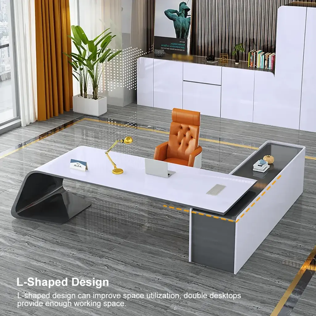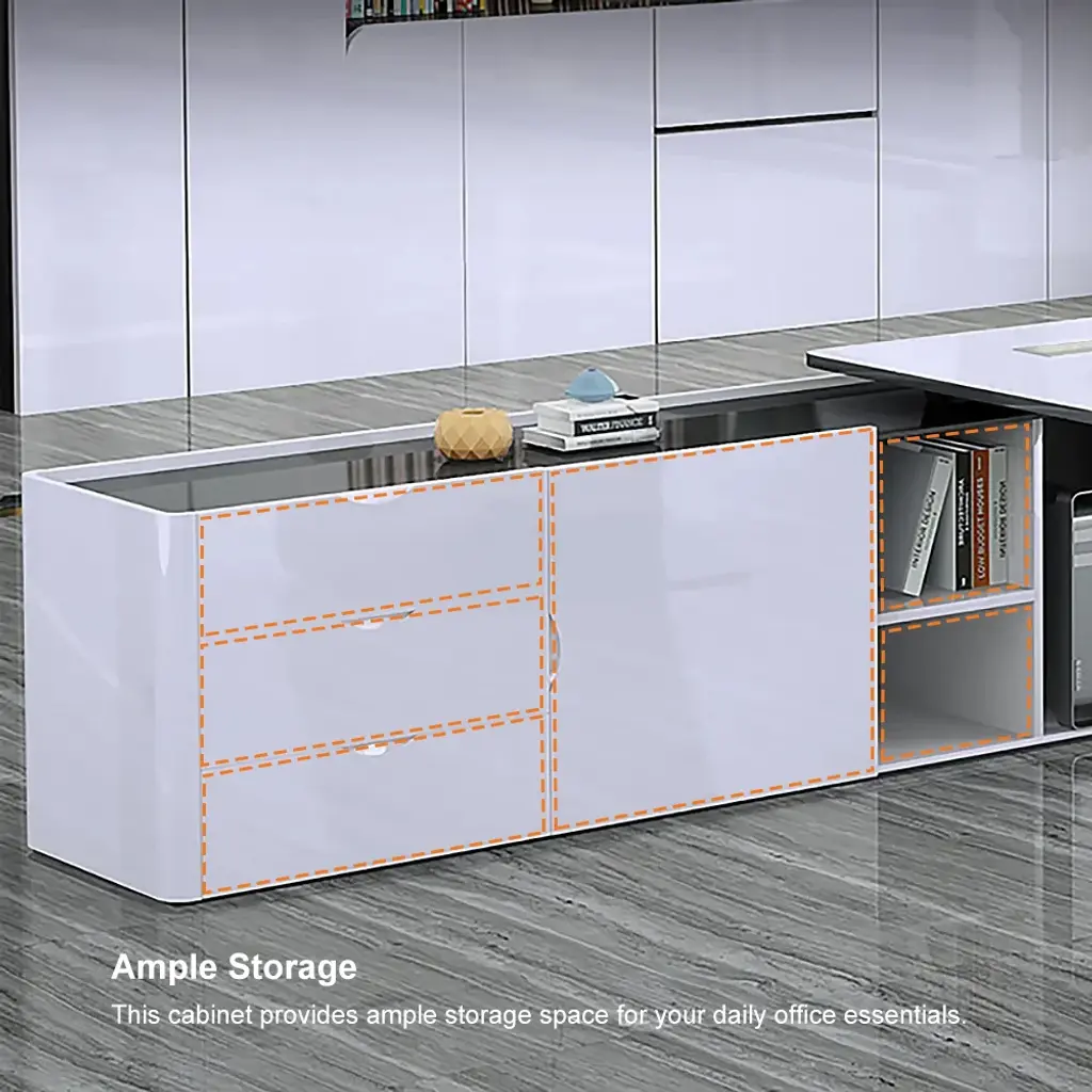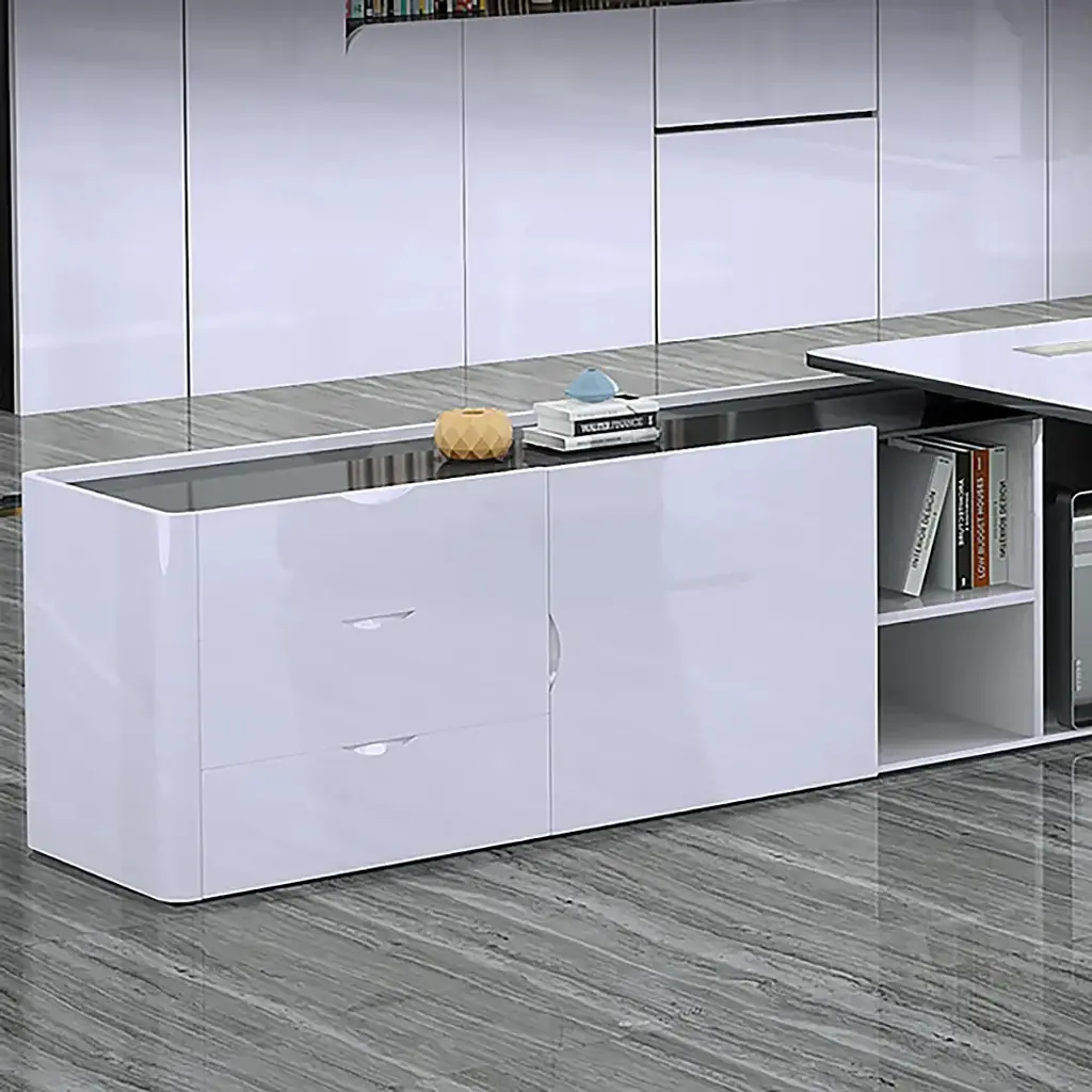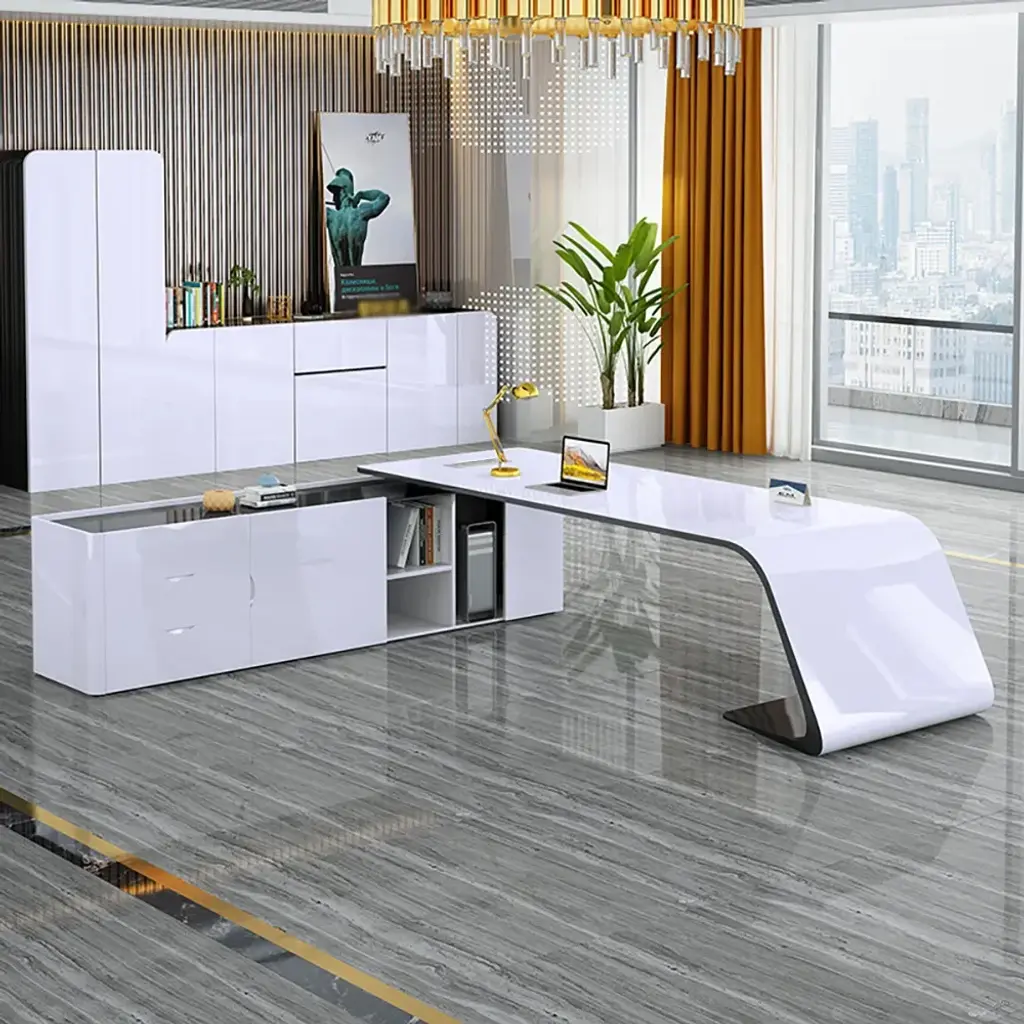 L-Shaped Left Hand Modern White Office Desk With Storage