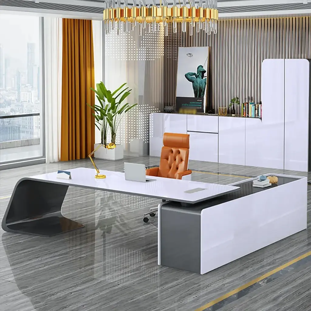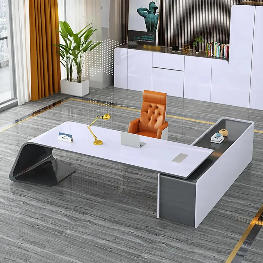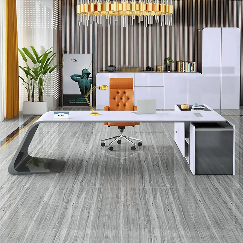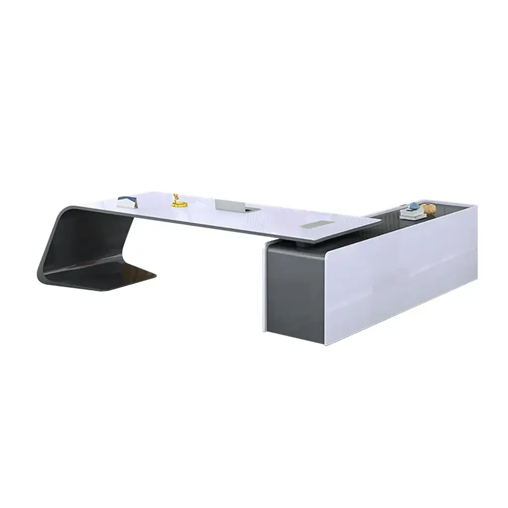 L-Shaped Left Hand Modern White Office Desk With Storage
