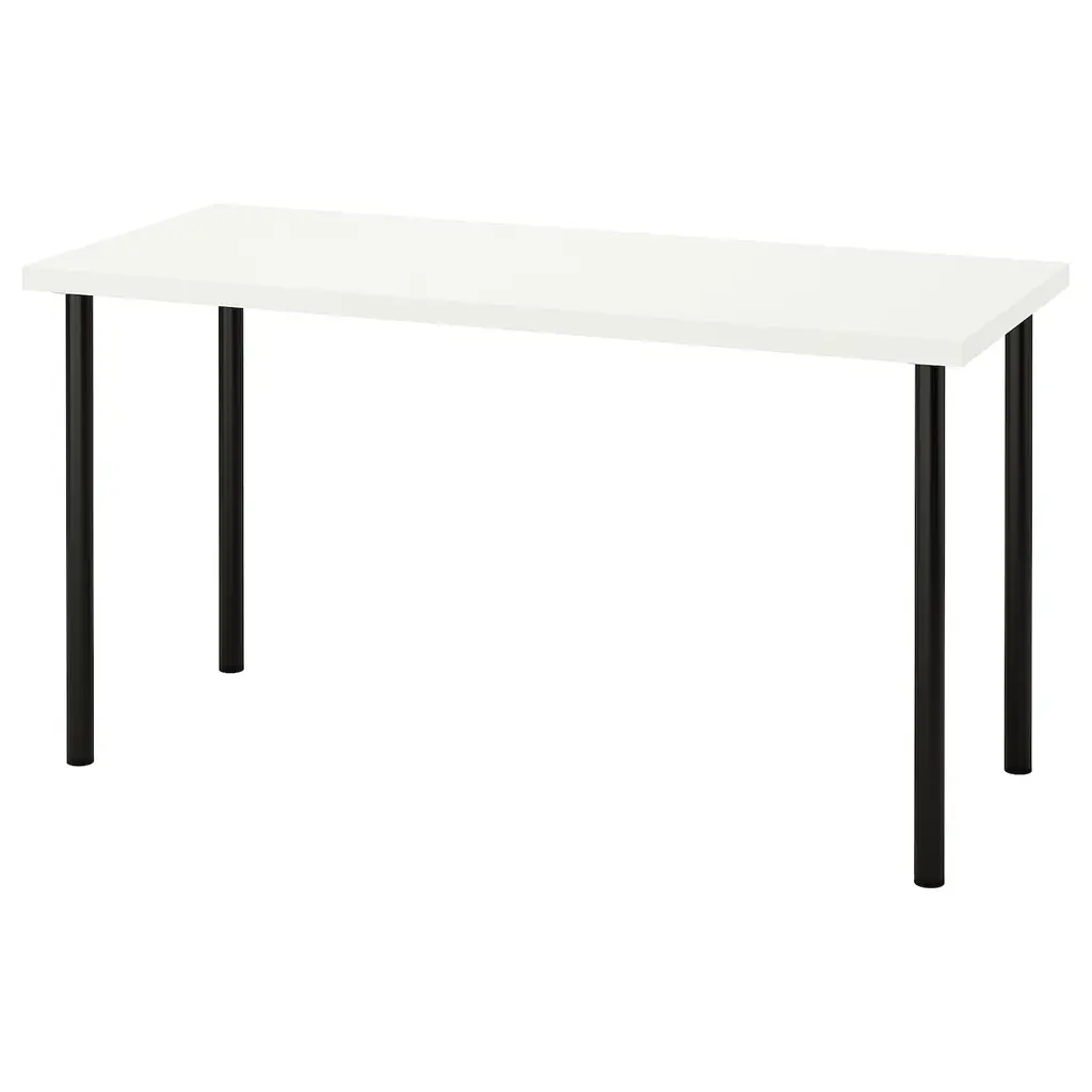 LAGKAPTEN / ADILS Desk - white/black 55 1/8x23 5/8 ". Pre-drilled leg holes for easy assembly. Adjustable feet allow you to level the table on uneven floors. Adjustable feet make the table stand steady also on uneven floors. Pre-drilled holes for legs, for easy assembly.