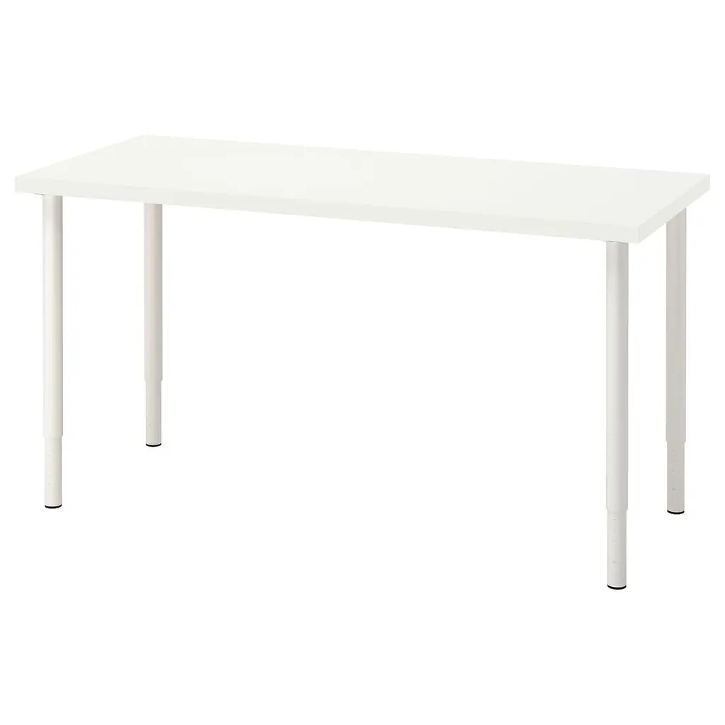 LAGKAPTEN / OLOV Desk - white 55 1/8x23 5/8 ". The tabletop has pre-drilled holes to make it easier to attach to the underframe. Product is possible to recycle or use for energy recovery, if available in your community.