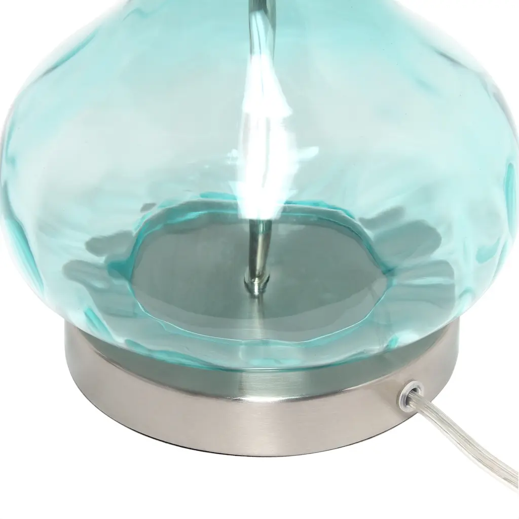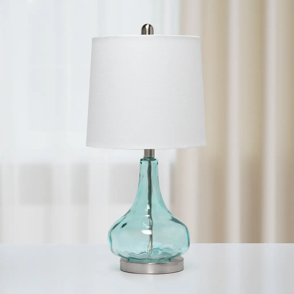 Elevate the ambiance of your space with the Lalia Home Contemporary Rippled Colored Glass Bedside Desk Table Lamp. The rippled texture on the transparent colored glass base adds a touch of elegance to the lamp, which is perfectly balanced by a tapered white fabric shade. This lamp is versatile and can be used to add sophistication to any room in your house, be it the bedroom, living room, foyer, or even nursery.Features: