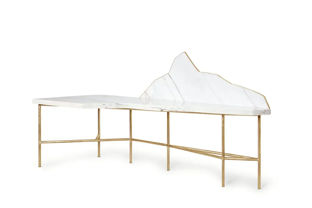 Landscape Desk by Ginger & JaggerDimensions: D 90 x W 240 x H 24 cm. Materials: Estremoz Rose stone and brass.Finish: Body in Estremoz Rose stone; metal in Brass in Brushed finishing.This product is suitable for custom size. This product is made for living areas and interior spaces only. This product is not specified for bathrooms, spas, or humid environments. Not suitable for exteriors. Available in different finishes. Please contact us.Launched in Europe in 2012, Ginger & Jagger is a product design brand that prides itself on creating handcrafted high-end contemporary products inspired by Nature.Designed and produced in Porto, a land of craftsmen and age-old tradition, Ginger & Jagger’s Earth to Earth collection is an evocative poetic realm, where Nature’s sculptural shapes are made eternal through handcraft, with unique artisanal techniques and an outstanding blend of superb materials such as brass, silver and copper, marble and stone, and wood.The designer's compass is kept by an uncompromising desire for creative innovation balanced with the integrity of the materials, the artisanal techniques employed, and the brand's very own narrative element.The artisanal techniques availed range from brass casting, wood, and marble marquetry, hand-hammered metals, and hand-sculpted marble.Striving towards sustainability. Ginger & Jagger supports organizations worldwide, with contributions indexed to the products crafted every year.