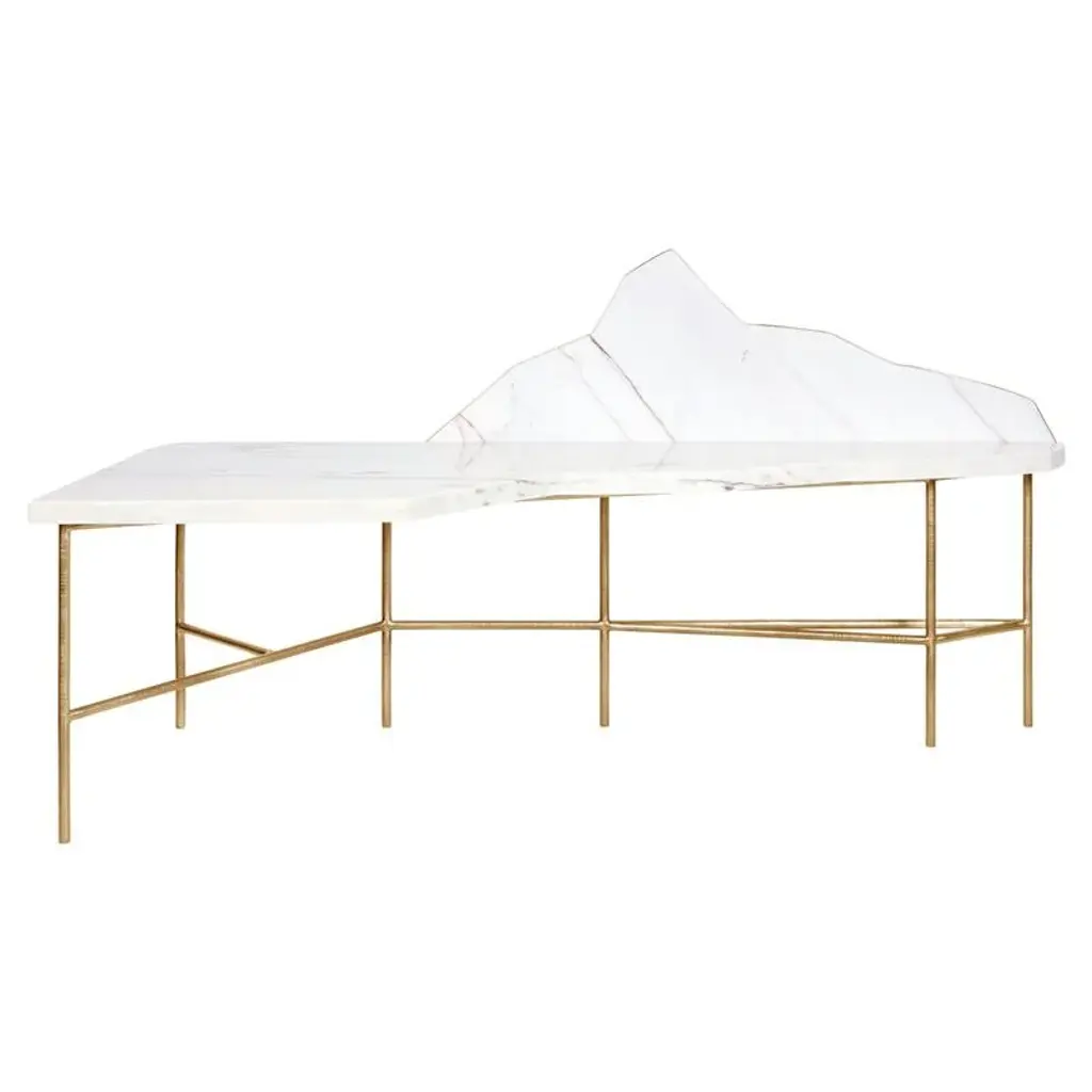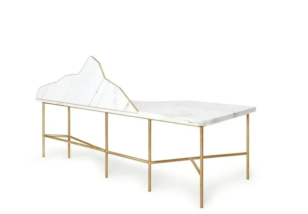 Landscape Desk by Ginger & Jagger Dimensions: D 90 x W 240 x H 24 cm. Materials: Estremoz Rose stone and brass. Finish: Body in Estremoz Rose stone; metal in Brass in Brushed finishing. This product is suitable for custom size. This product is made for living areas and interior spaces only. This product is not specified for bathrooms, spas, or humid environments. Not suitable for exteriors.