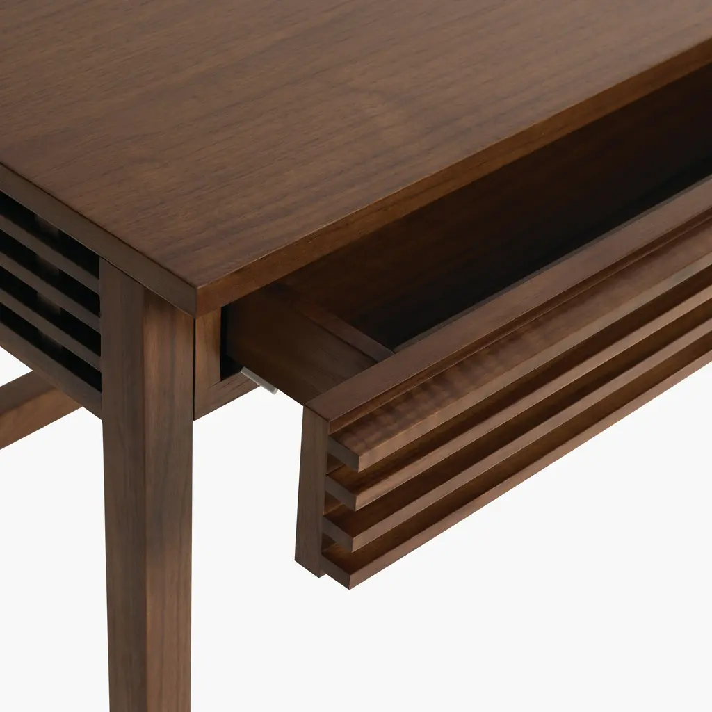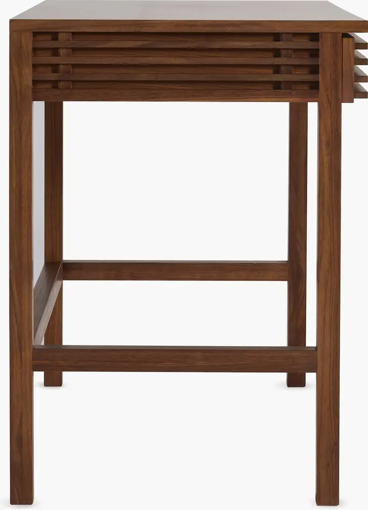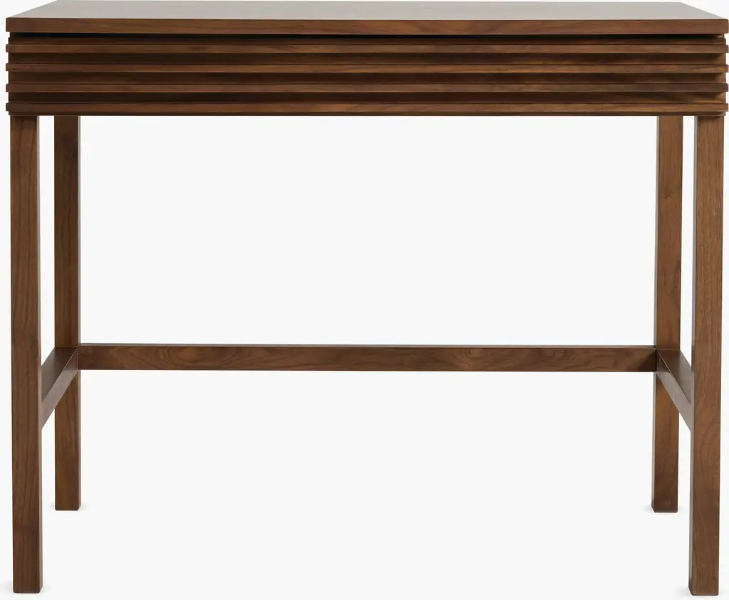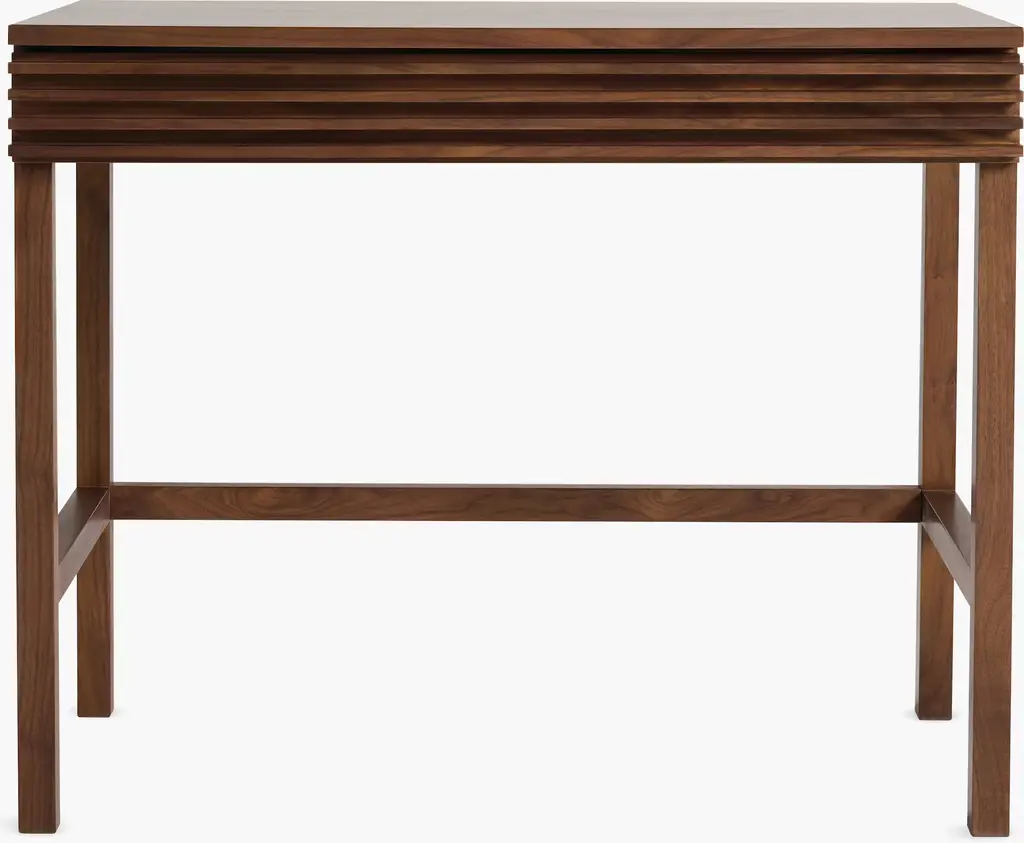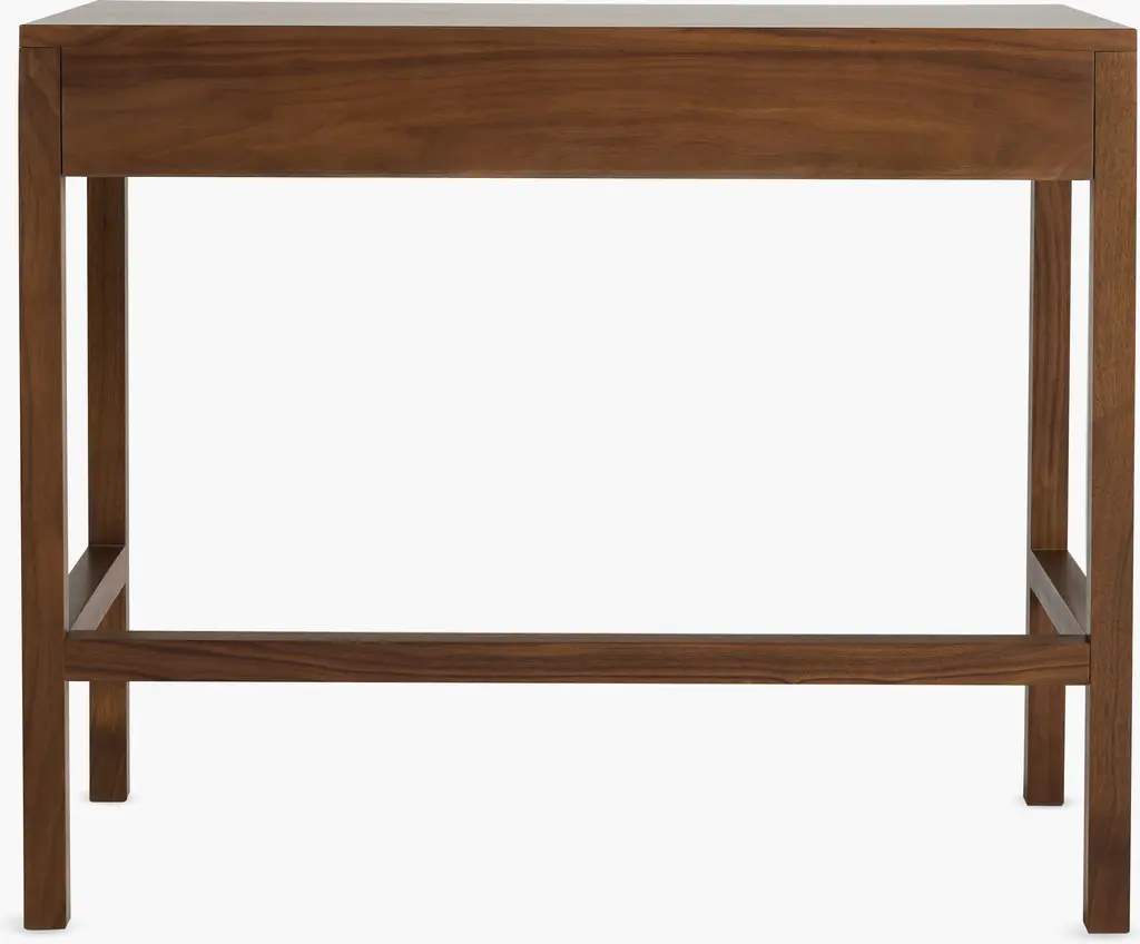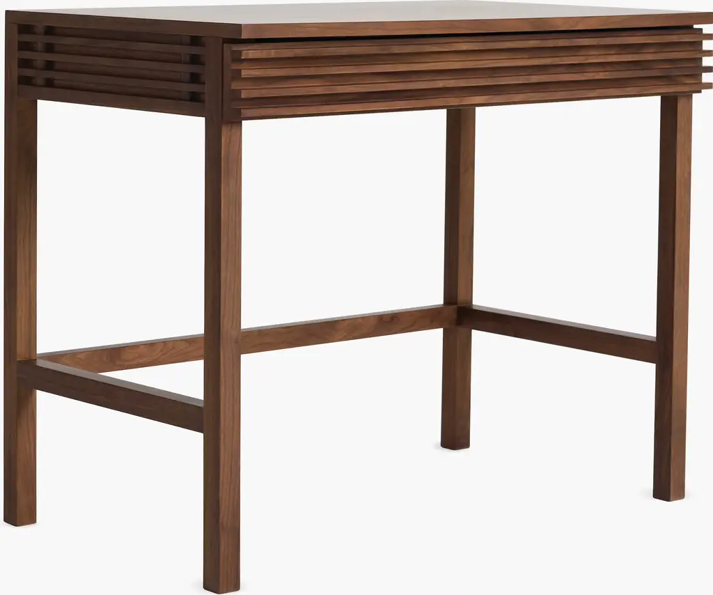 A petite version of the bestselling Line Storage Desk, the new Line Mini Desk (2023) is an elegant foundation for a WFH space with a small footprint - perfect to slip into a living area, bedroom, or home office. Measuring 36" wide, and 21.5" deep, this desk features a single drawer for supplies and a hidden cubby in the back for routing cables to the desktop or drawer. It's expertly crafted in a choice of walnut, oak, or black-painted oak, and distinguished by strong horizontal lines that reflect the natural landscape and lend a sense of calm. Made in Vietnam.