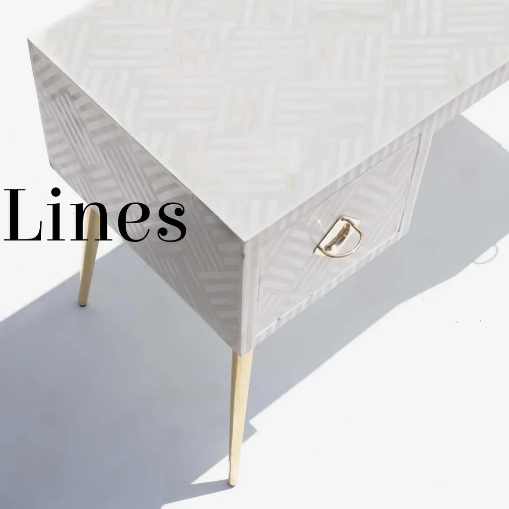 Lines White Inlay Desk, Handcrafted By Artisanal