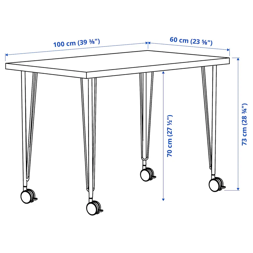 LINNMON / KRILLE Desk - black-brown/black 39 3/8x23 5/8 ". Pre-drilled holes for legs, for easy assembly. Lockable casters make the table easy to move and lock in place. Screws for attaching the legs to the table top are included.