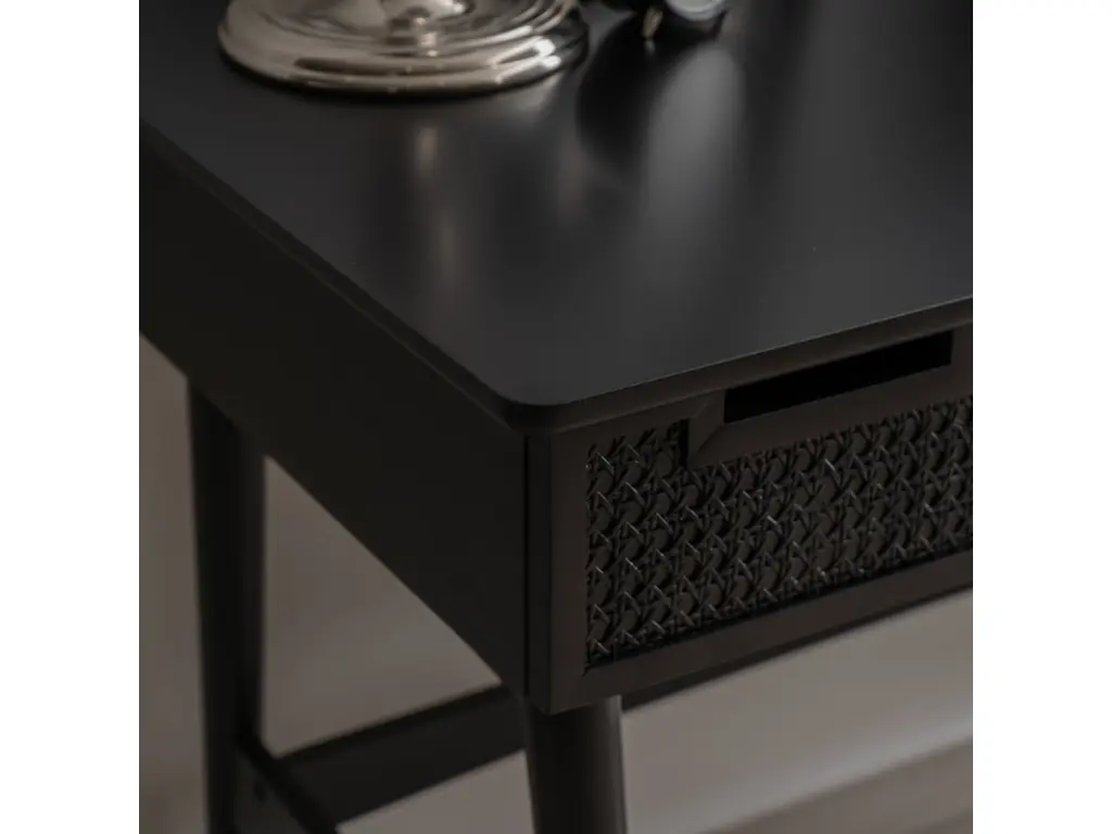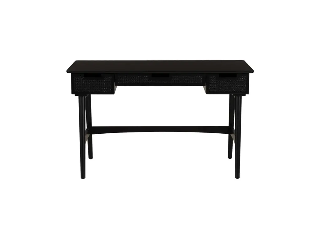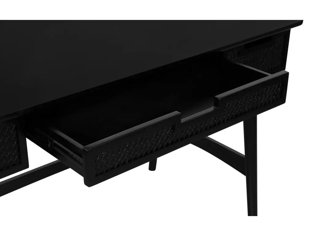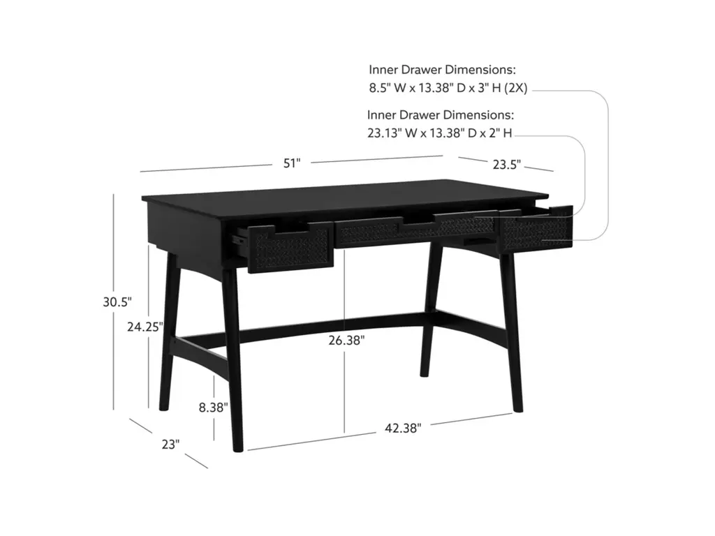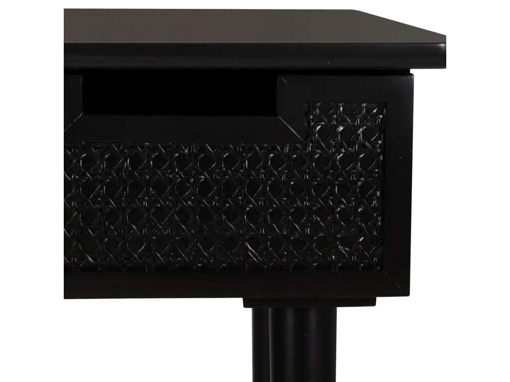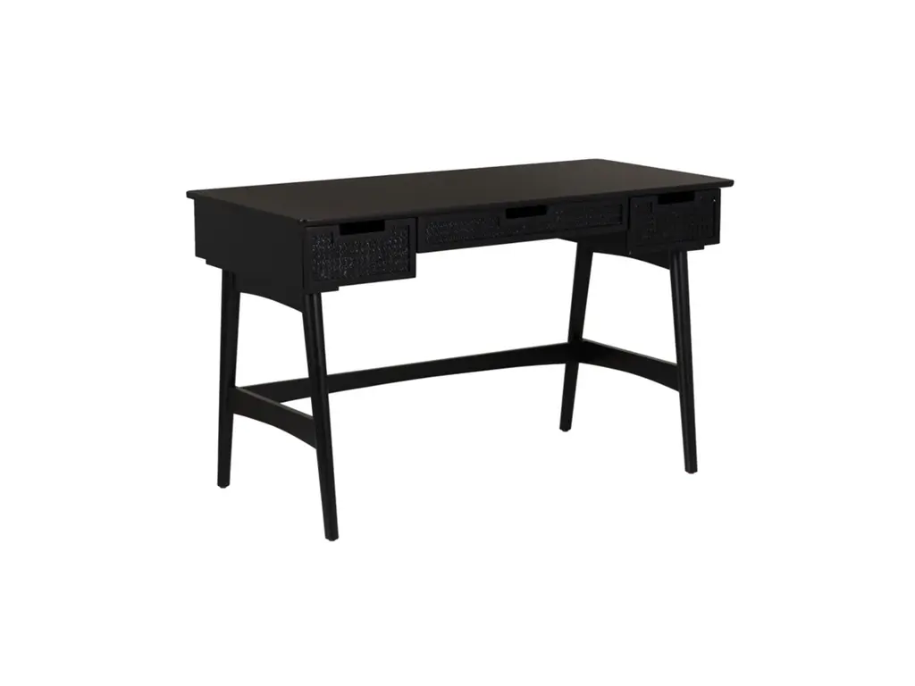 Discover our sophisticated Black Desk, meticulously crafted to elevate your workspace with style and functionality. Constructed from a high-quality blend of rubber wood and plywood, this desk offers durability and reliability for daily tasks. The front panel showcases a unique rattan design, adding a touch of elegance to its sleek black finish. With dimensions of 50.94 inches in length, 23.5 inches in depth, and 30.5 inches in height, this desk provides ample space for productivity without compromising aesthetics. Whether working from home or tackling projects, this black desk is the perfect blend of timeless charm and practicality for your office space.
