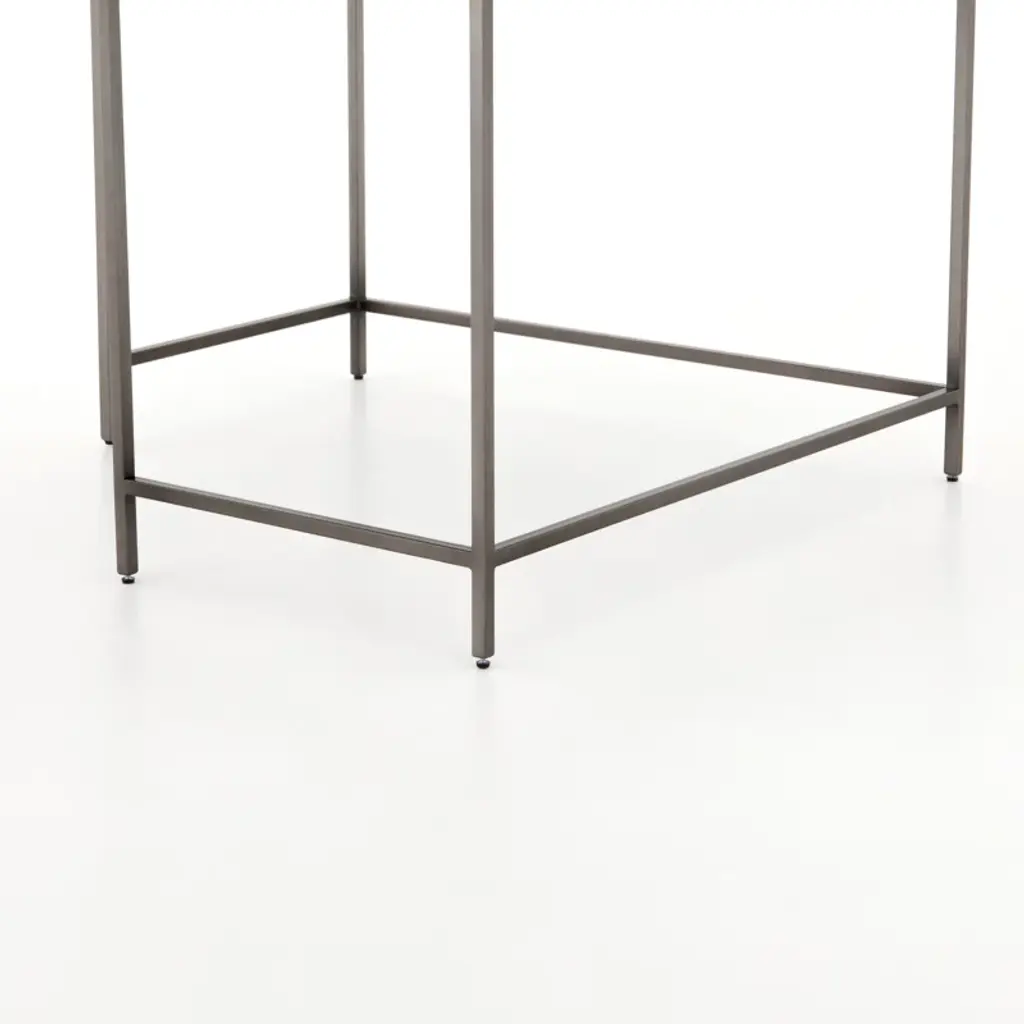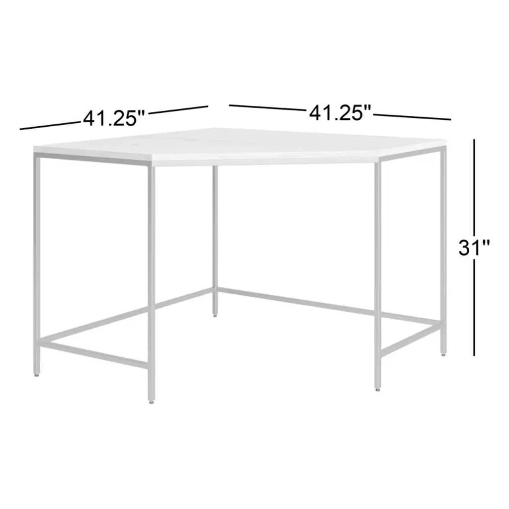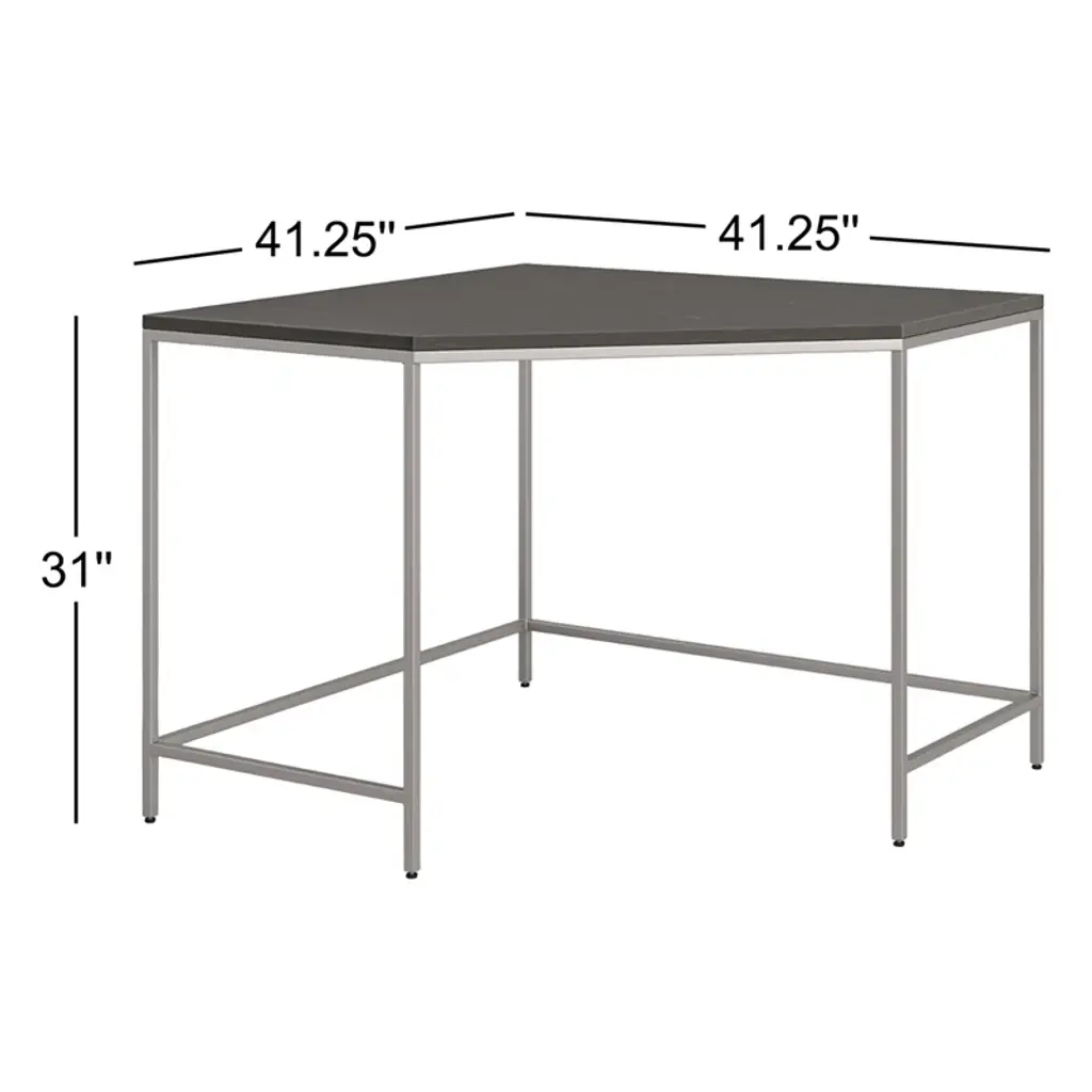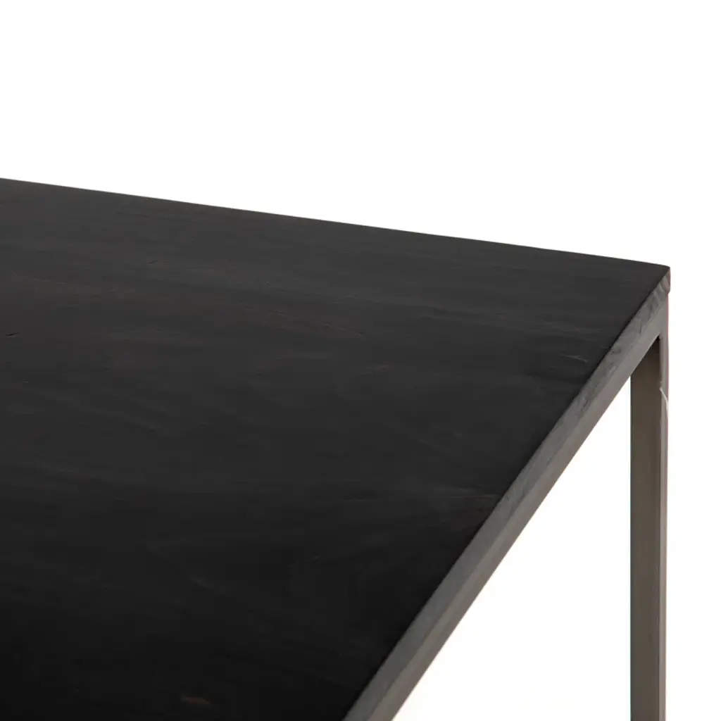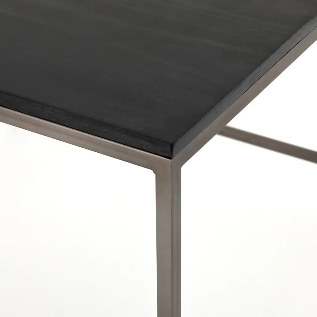Sleek and simple, a corner desk of poplar and natural iron brings extra surface space to the workspace. Great solo or paired with a matching desk, filing cabinet, or credenza.