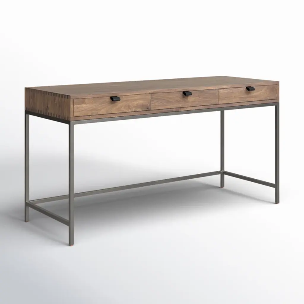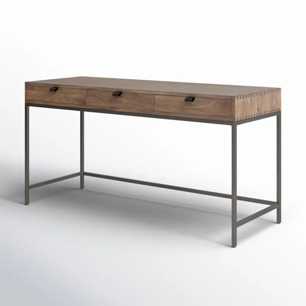 Inspired by a clean mid-century design, poplar offers generous desk storage by way of three spacious drawers, with a fully finished back plus metal-secured leather pulls for an element of surprise. Great solo or paired with a matching corner desk, file cabinet, or credenza.