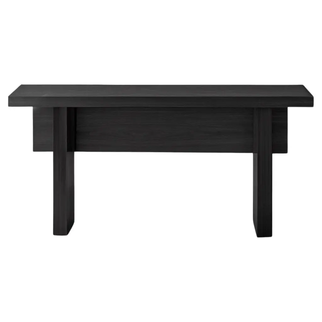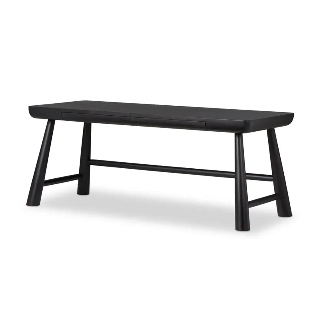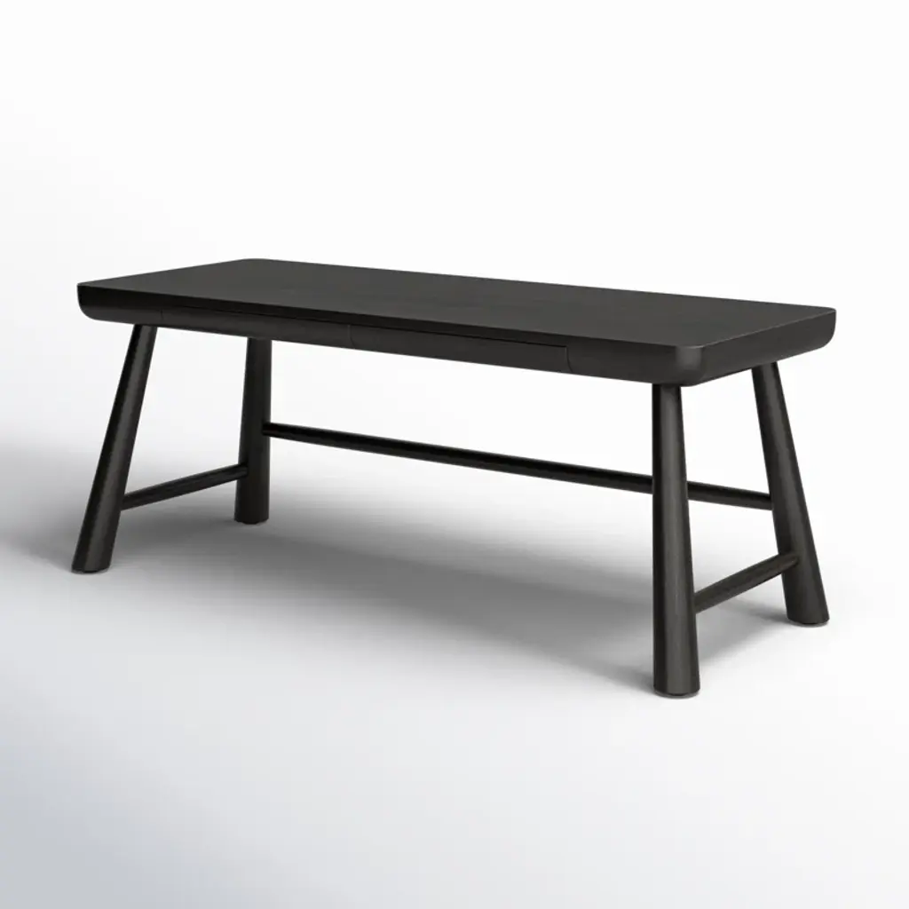 Wabi Sabi-inspired and designed with a clean, bold shape. This rustic desk features a modernized shape crafted from worn acacia wood. Designed with cylindrical legs that are both angled and tapered for added movement. Built-in, hidden pencil drawers keep the focus on the natural graining and grooves of the wood used to craft this piece.