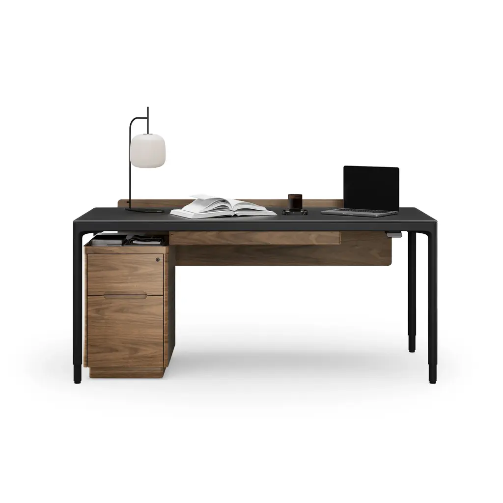 Designed to support focus and movement throughout your workday, the Luma Lift Desk from BDI is a high-functioning foundation for the modern office. This intelligent sit/stand desk features a digitally controlled lift system, allowing for seamless transitions with programmable memory settings. The elegant, satin-etched glass top resists smudges, while a concealed cable management system and integrated power strip keep your workspace clean and organized. A fusion of sleek design and smart ergonomics, it enhances your comfort and productivity. Highlights: