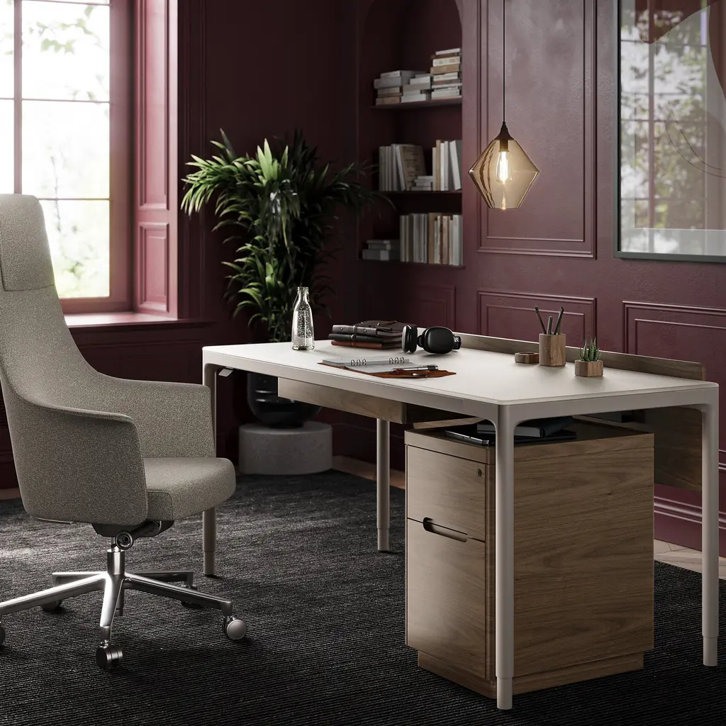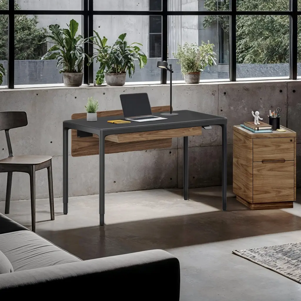 Designed to support focus and movement throughout your workday, the Luma Lift Desk from BDI is a high-functioning foundation for the modern office. This intelligent sit/stand desk features a digitally controlled lift system, allowing for seamless transitions with programmable memory settings. The elegant, satin-etched glass top resists smudges, while a concealed cable management system and integrated power strip keep your workspace clean and organized. A fusion of sleek design and smart ergonomics, it enhances your comfort and productivity. Highlights: