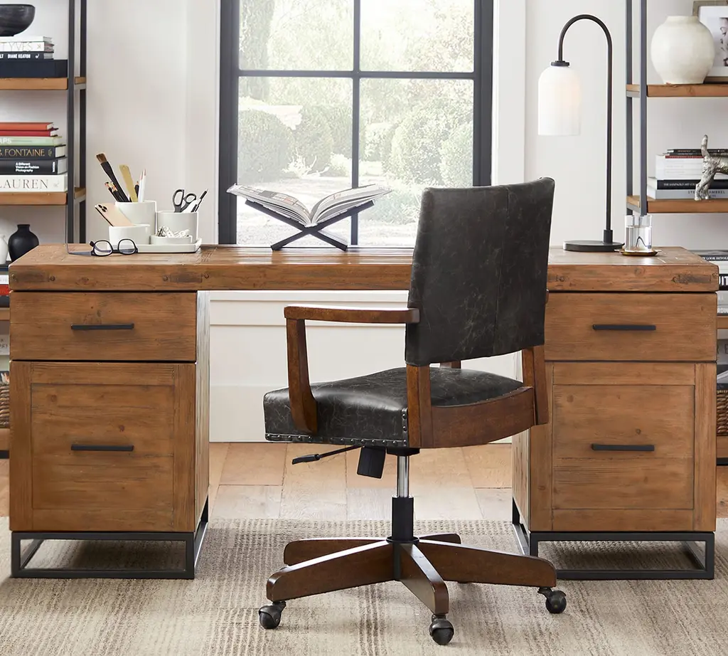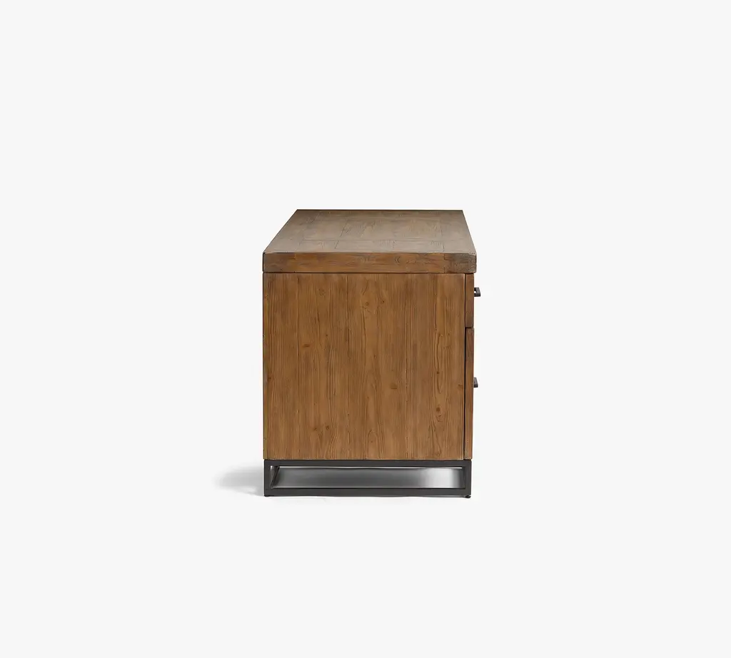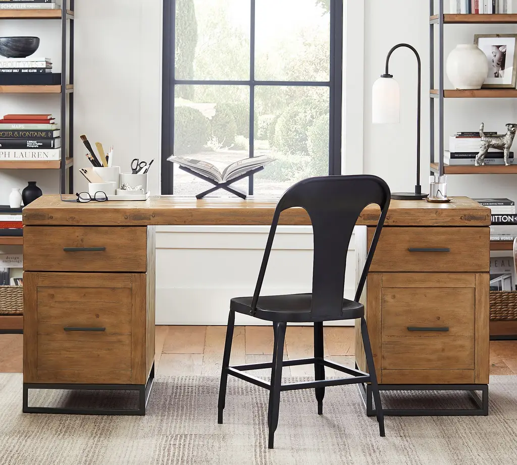 An antique Chinese door served as the inspiration for our Malcolm Collection. Expertly crafted of spruce, the rustic look of the wood contrasts handsomely with a modern metal base.