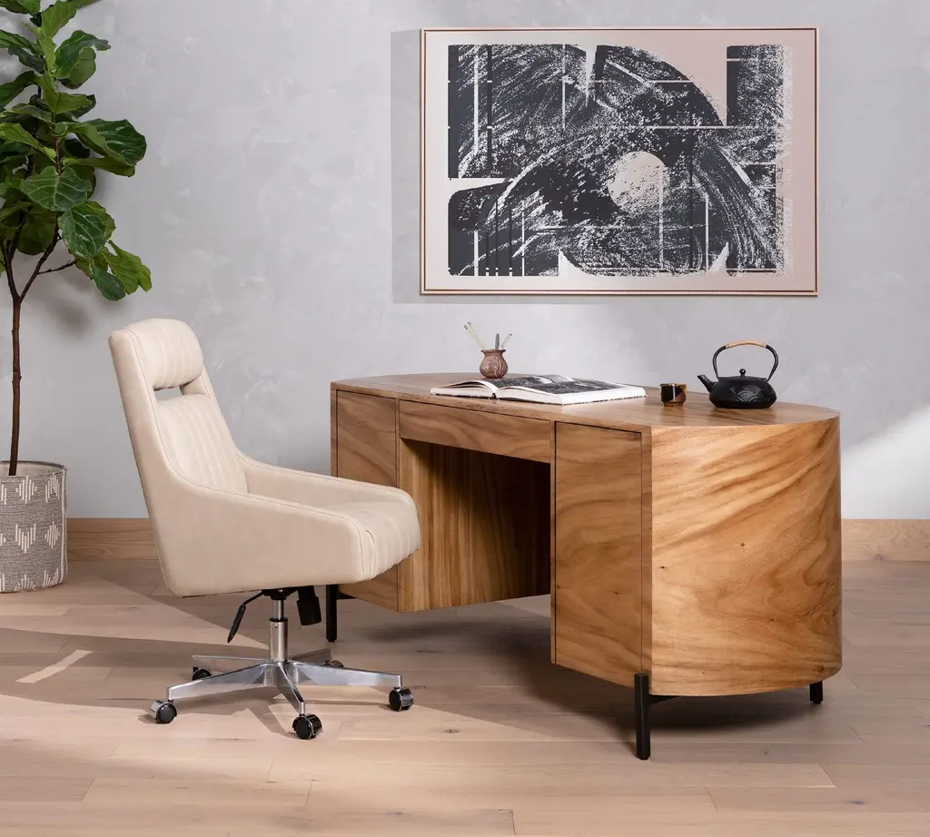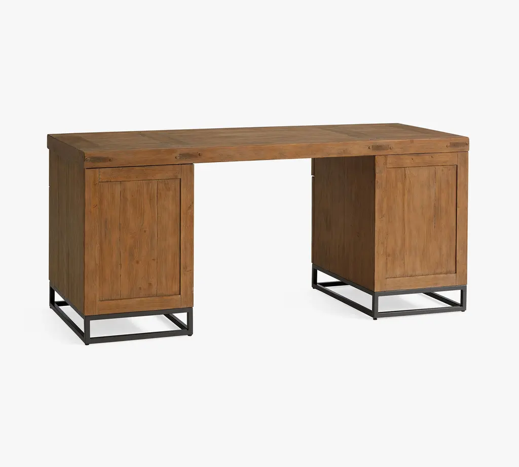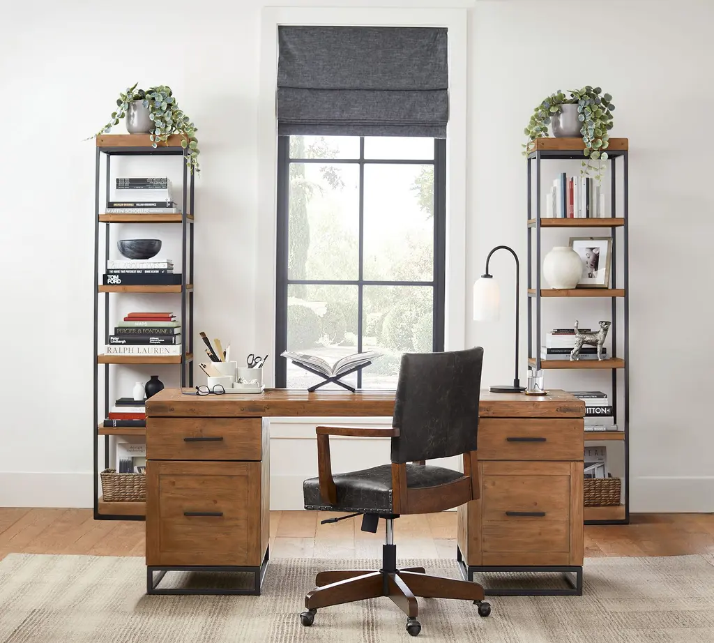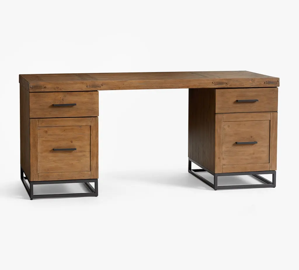 An antique Chinese door served as the inspiration for our Malcolm Collection. Expertly crafted of spruce, the rustic look of the wood contrasts handsomely with a modern metal base.