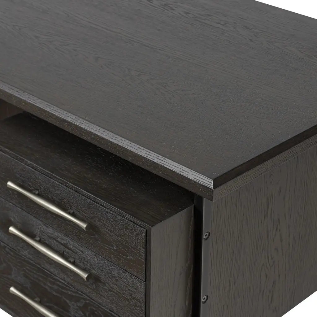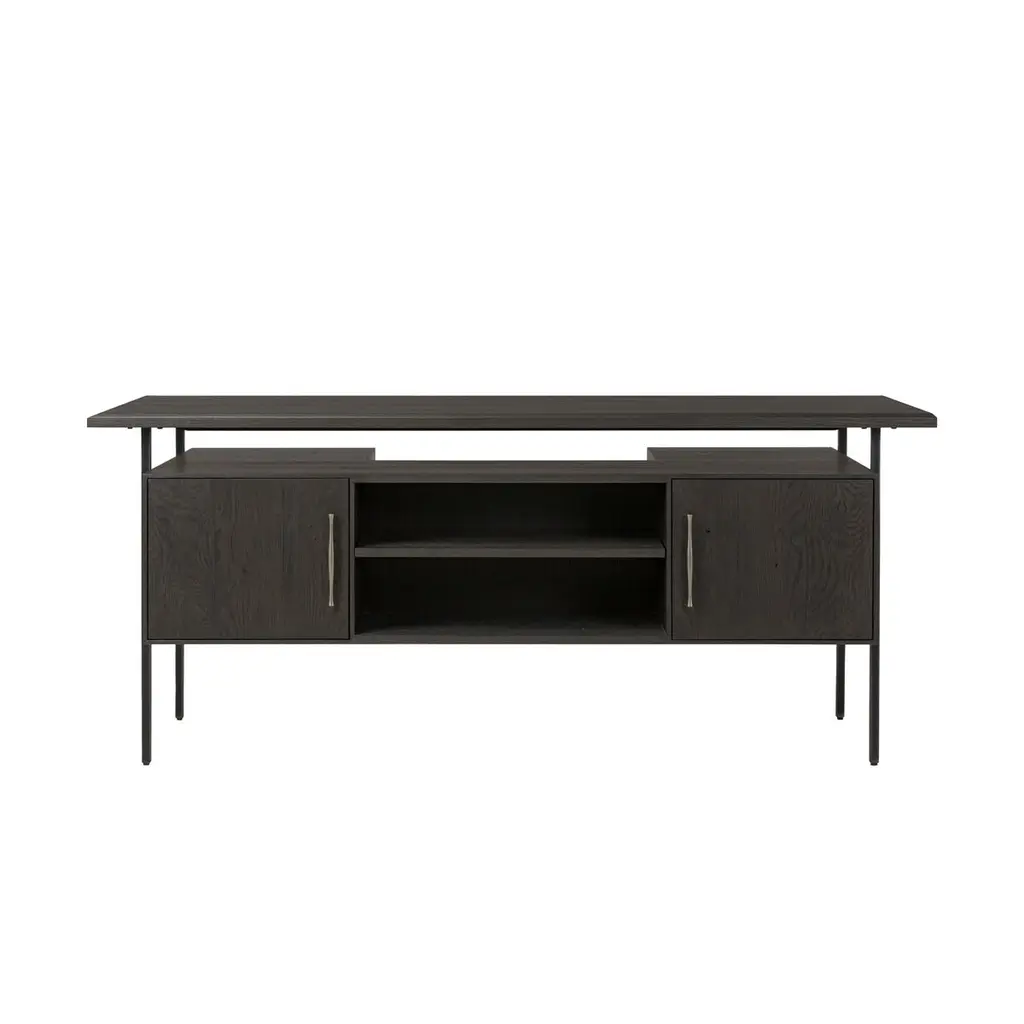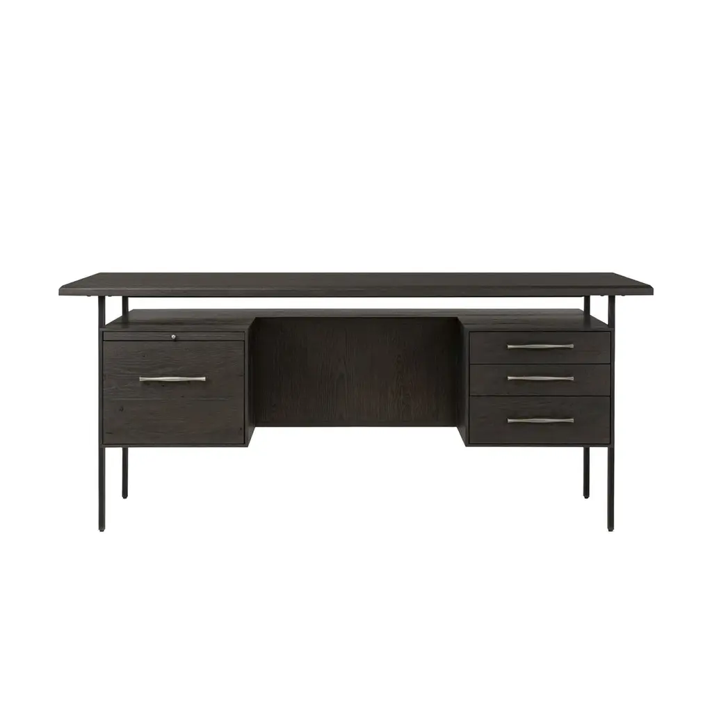 The Mallory Desk is a masterful blend of functionality and modern design, crafted in collaboration with the esteemed designer Thomas Bina. This legal-style desk provides ample storage with its dual cabinetry, perfect for organizing legal and letter-size documents. Its floating top and iron legs lend a contemporary and airy feel, while the use of solid and reclaimed materials showcases a commitment to quality and sustainability. This piece is part of a unique collection that highlights reclaimed wood-driven case goods and Brazilian-inspired upholstery, reflecting a partnership that began in the early 2000s with a renowned Los Angeles furniture designer.