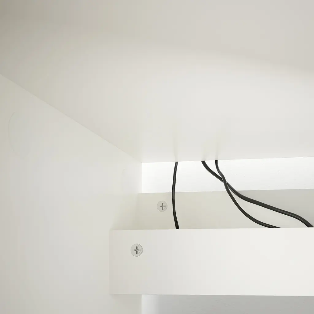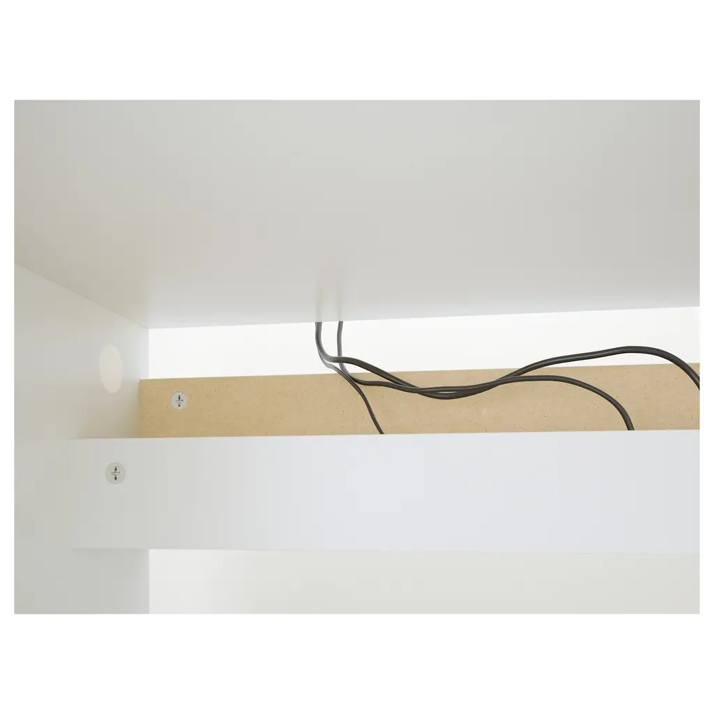 MALM Desk - white 55 1/8x25 5/8 ". You can collect cables and extension cords on the shelf under the table top, so they’re hidden but still close at hand. Can be placed anywhere in the room because the back is finished. Combines with other furniture in the MALM series.
