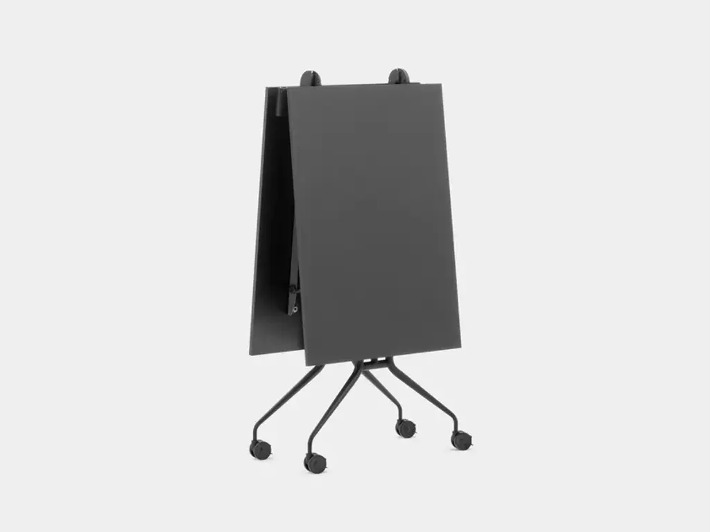 Argo Libro is a space saving table of big dimensions that can be fold in 40 cm. It can be used during conferences, meetings, workgroups and trainings, whilst giving the location an ample usage flexibility. The mechanical folding system makes this table easy to move by one person alone. Once closed it can pass with ease through doors and elevators and can be placed in small storages as well. Libro is EN 15372:2016 certified, which proves its robustness, reliability and security. The table is equipped with the exclusive antishock system, designed and patented by Mara, which is able to keep the user’s hands safe when opening the table.Top: Melamine th. 19 mm colour black Legs finishing: 116 - RAL 9005 smooth