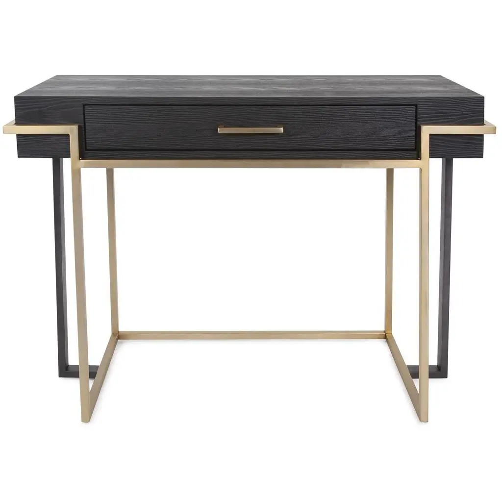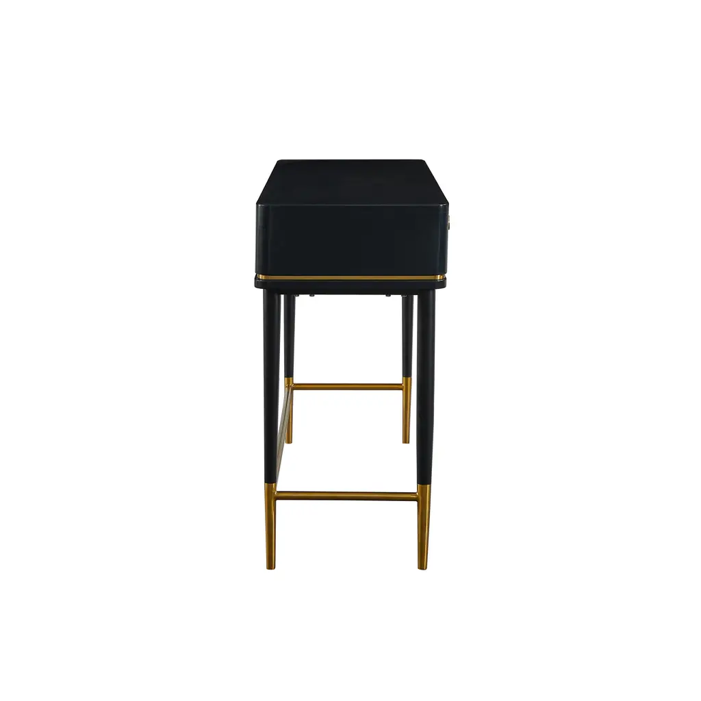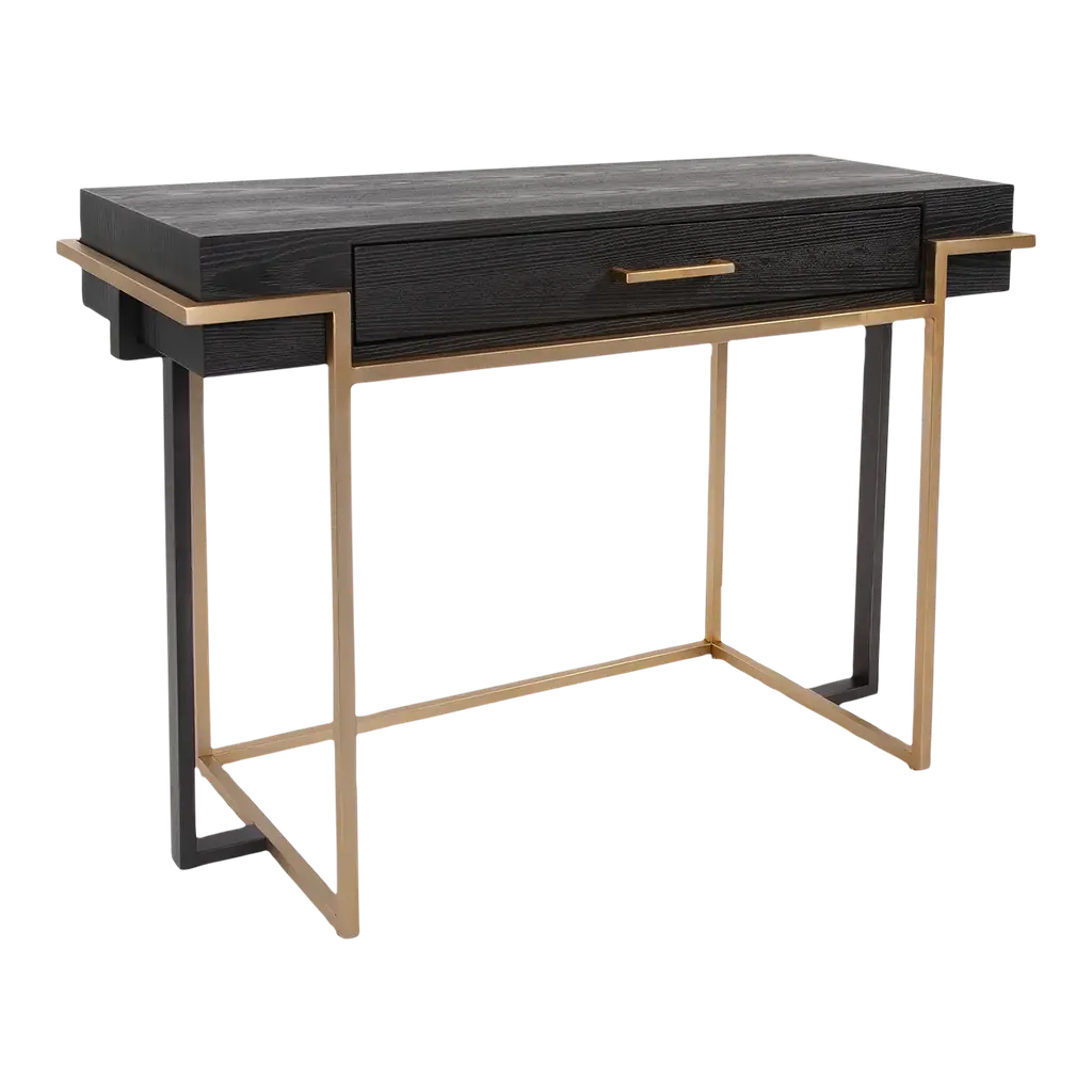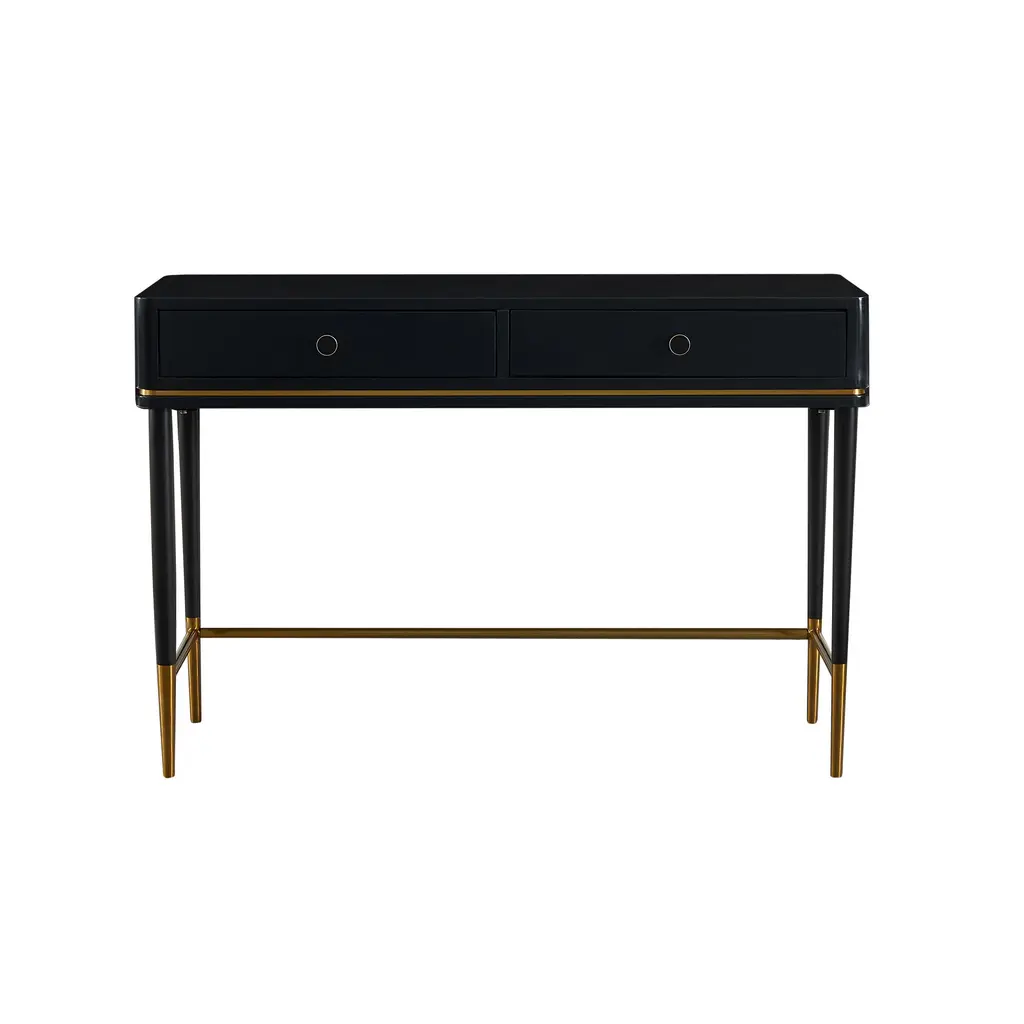 Transform your workspace with the Mariah Two Drawer Desk, a captivating Art Deco design piece. With its intricate gold inlay detail, this desk adds a touch of drama to your office, making it not just a functional piece but a true work of art. Available in both off-white and black, the Mariah desk brings a unique and stylish flair to your workspace.