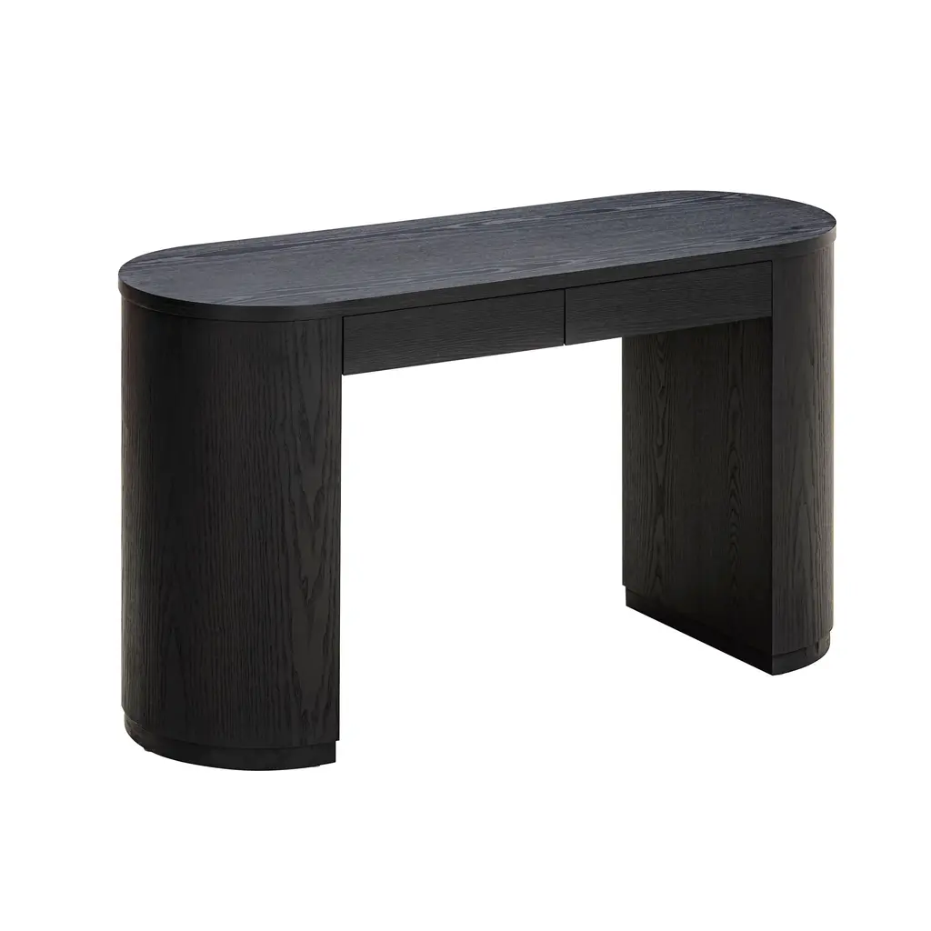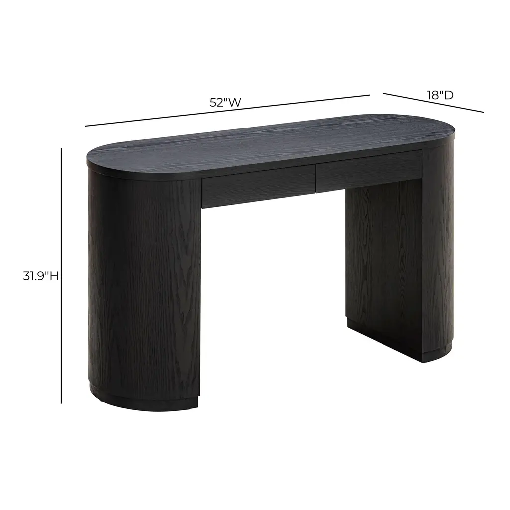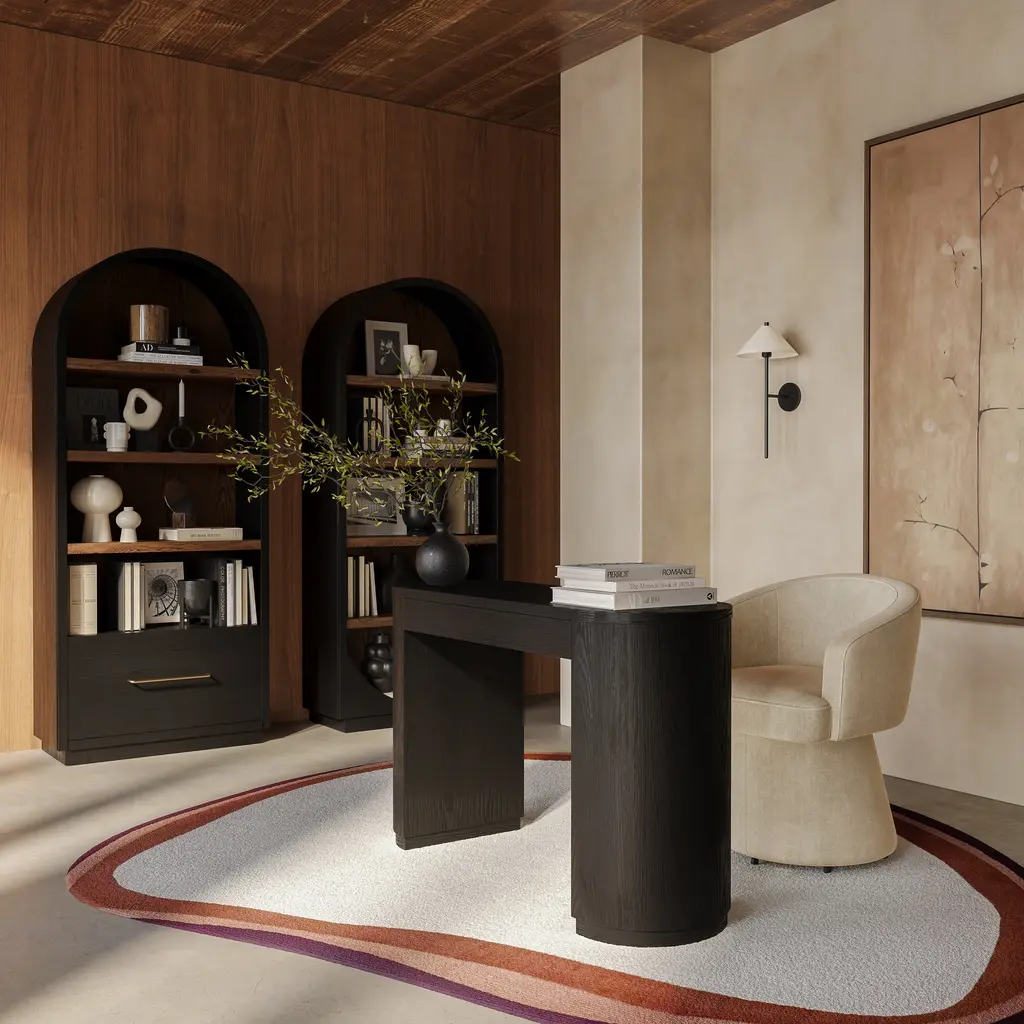 The Marlow Wood Writing Desk brings warmth and modern sophistication to your space. With its gently curved silhouette and clean, minimalist design, it works beautifully as a writing desk or entryway console. Two velvet-lined drawers provide a touch of luxury while keeping essentials neatly tucked away. Available in natural wood or black and dark brown two-tone finish, the Marlow Desk is a versatile statement piece for any room.