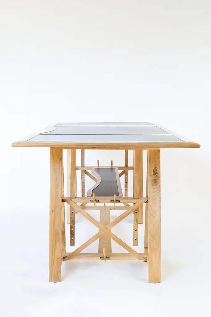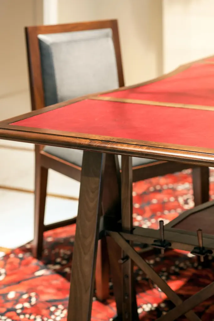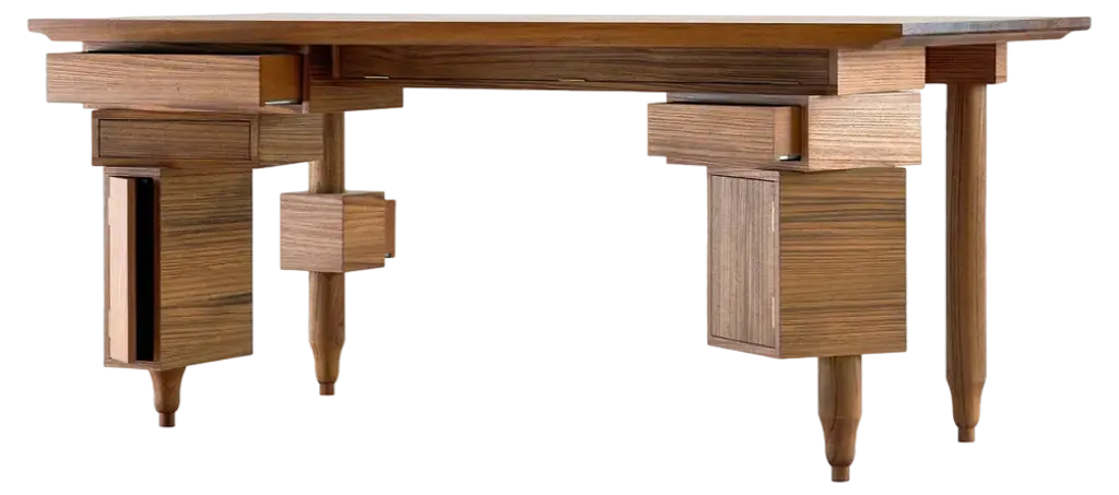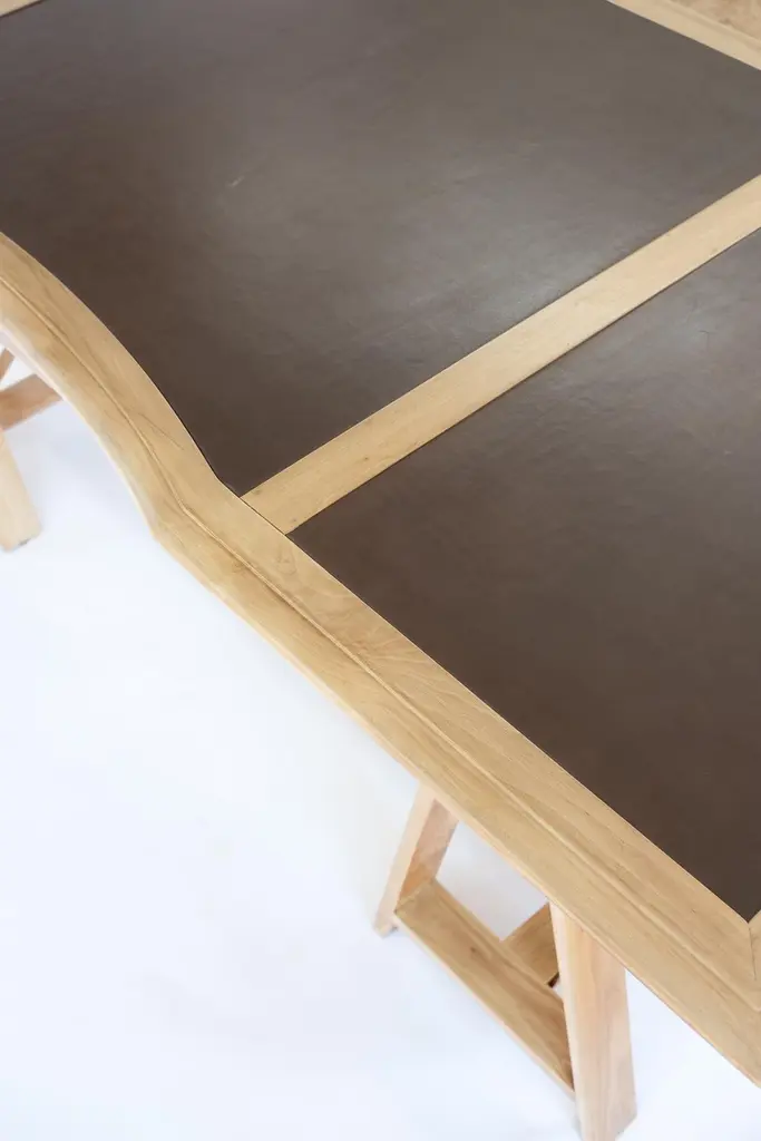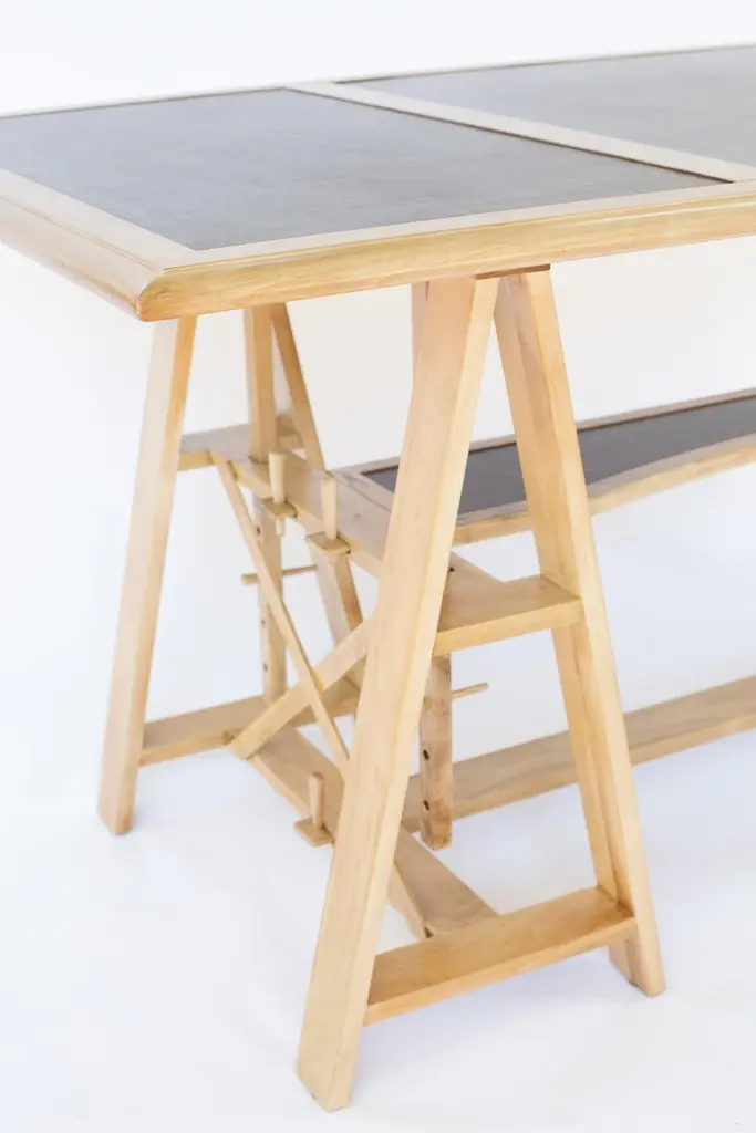 The Iconic Jean Pierre desk named after the famous actor Jean Pierre Aumont is an handcrafted desk in solid walnut with black or brown leather insets, adjustable top position, Classic construction with traditional joinery. Custom sizes and finishes available.