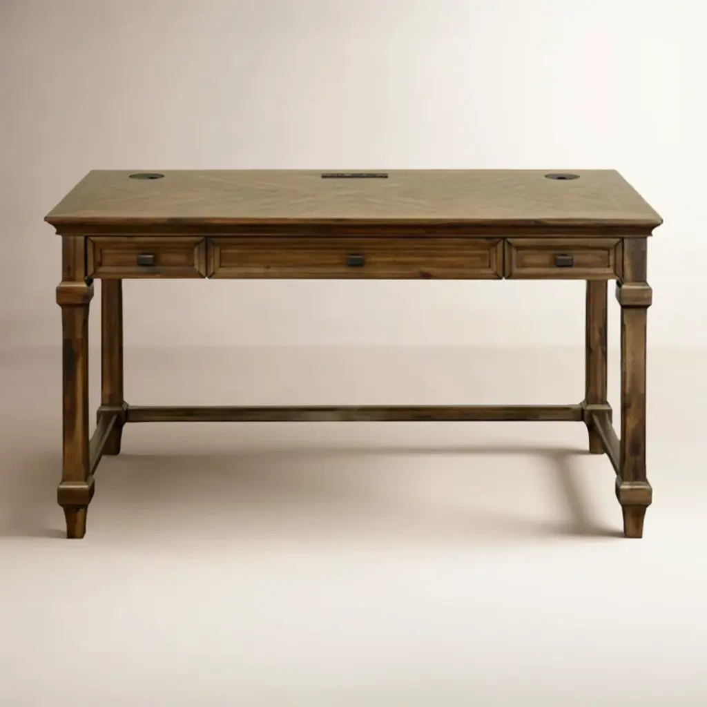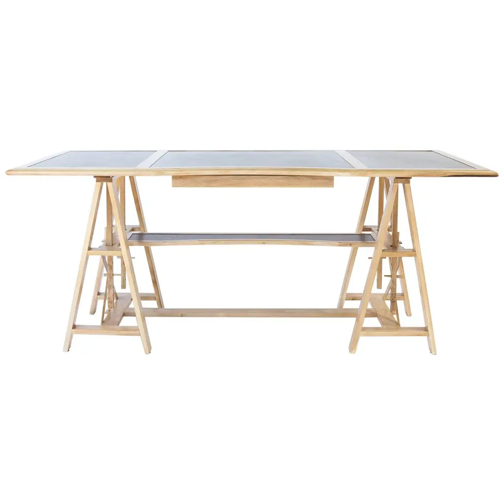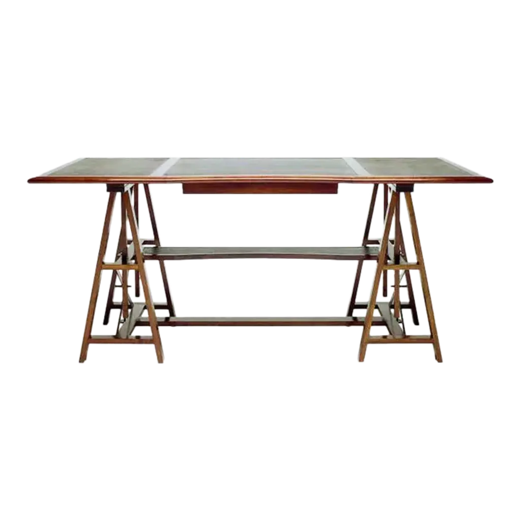 Medium Dark Walnut Architect Adjustable Desk With Black Or Brown Leather Insets