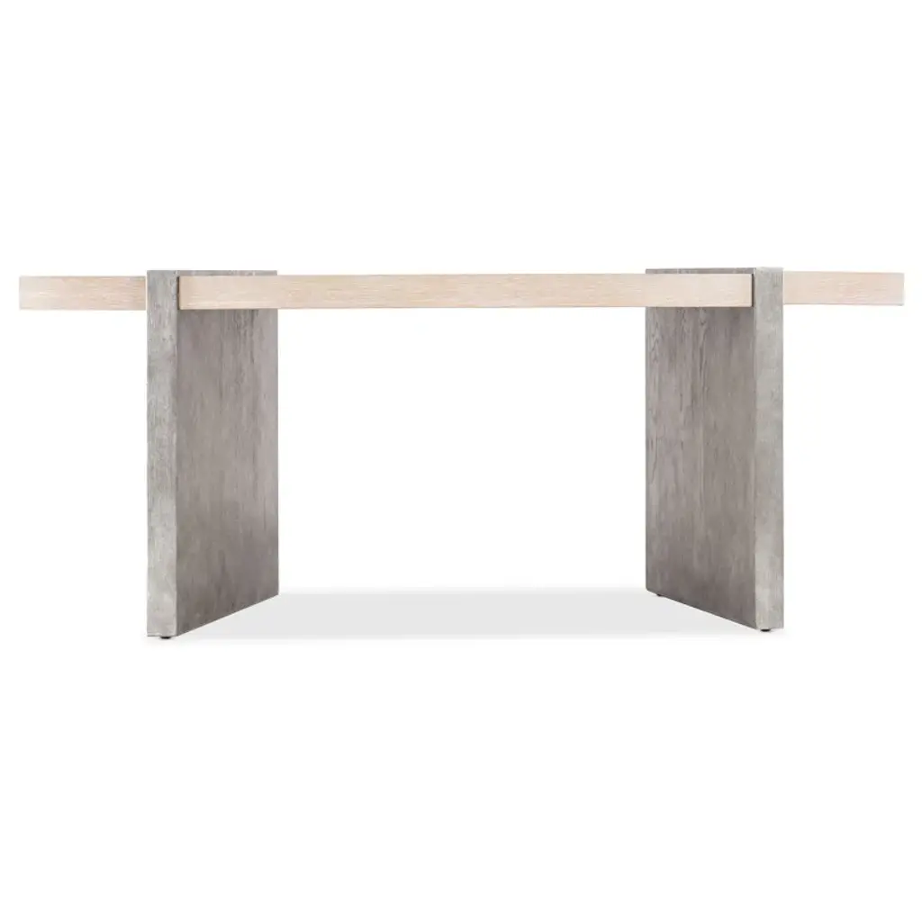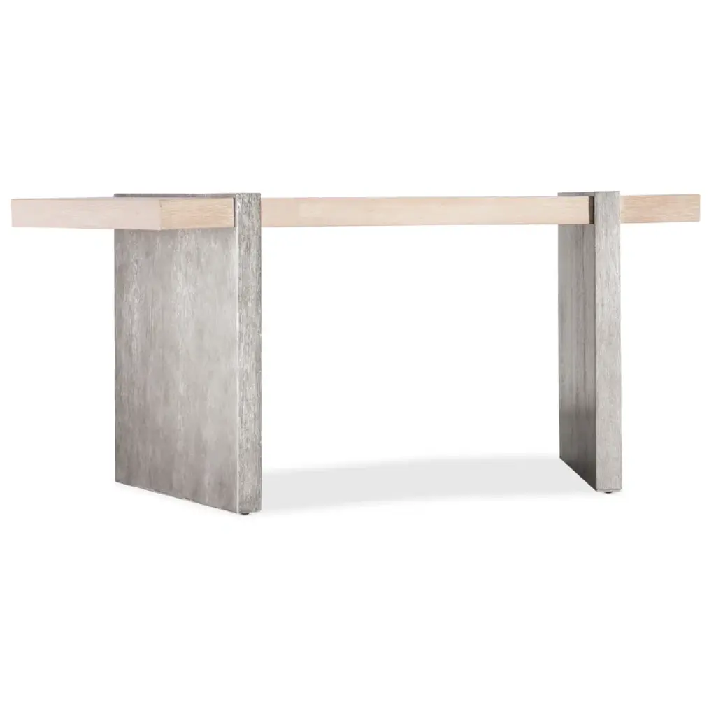Offering a two-tone finish in a semi-circle-shaped desk design contrasting oak veneers in a light wood finish with a shimmery silver-finished base, the writing desk has a calming contemporary style and a user-friendly work surface. Come closer to Melange, and you will discover something unexpected, an eclectic blending of colors, textures, and materials in a vibrant collection of one-of-a-kind artistic pieces.