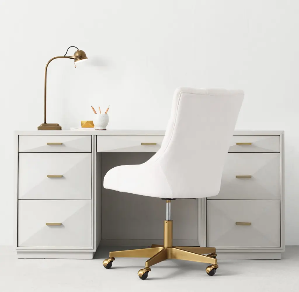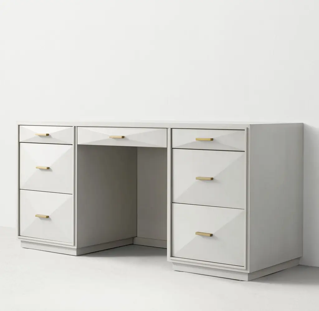 Inspired by Hollywood Regency designs, our Miranda collection is distinguished by a pattern of richly dimensional faceted diamonds pieced by hand. Champagne Brass pulls add a jewel-like accent, enhancing the elegant aesthetic. GREENGUARD Gold Certified. Meets or exceeds stringent chemical emissions standards. Learn more.