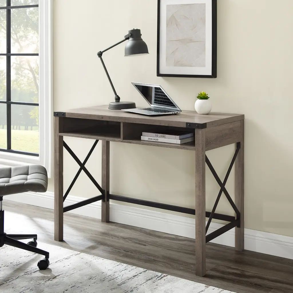 Modern Farmhouse Metal-X Desk With Open Cubbies