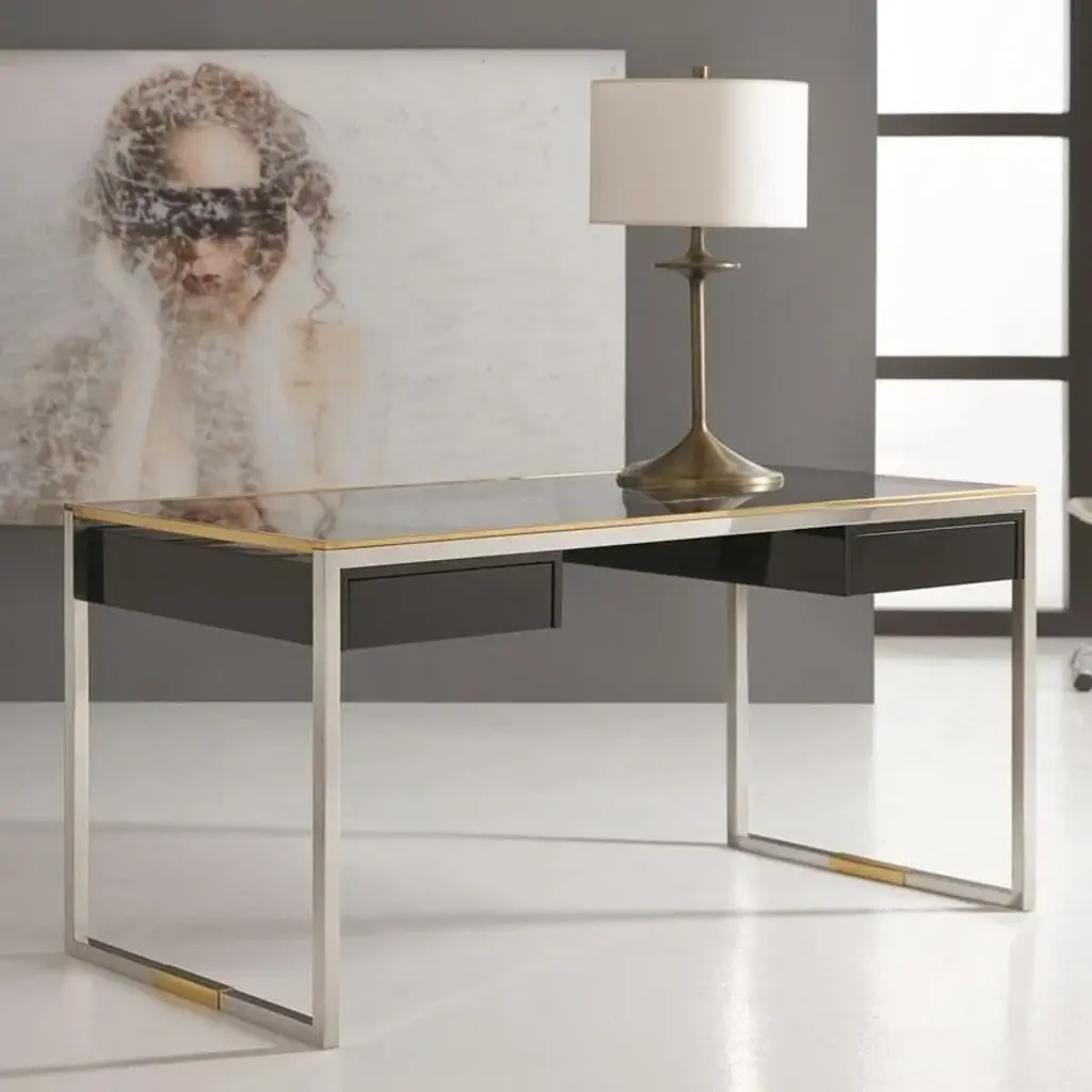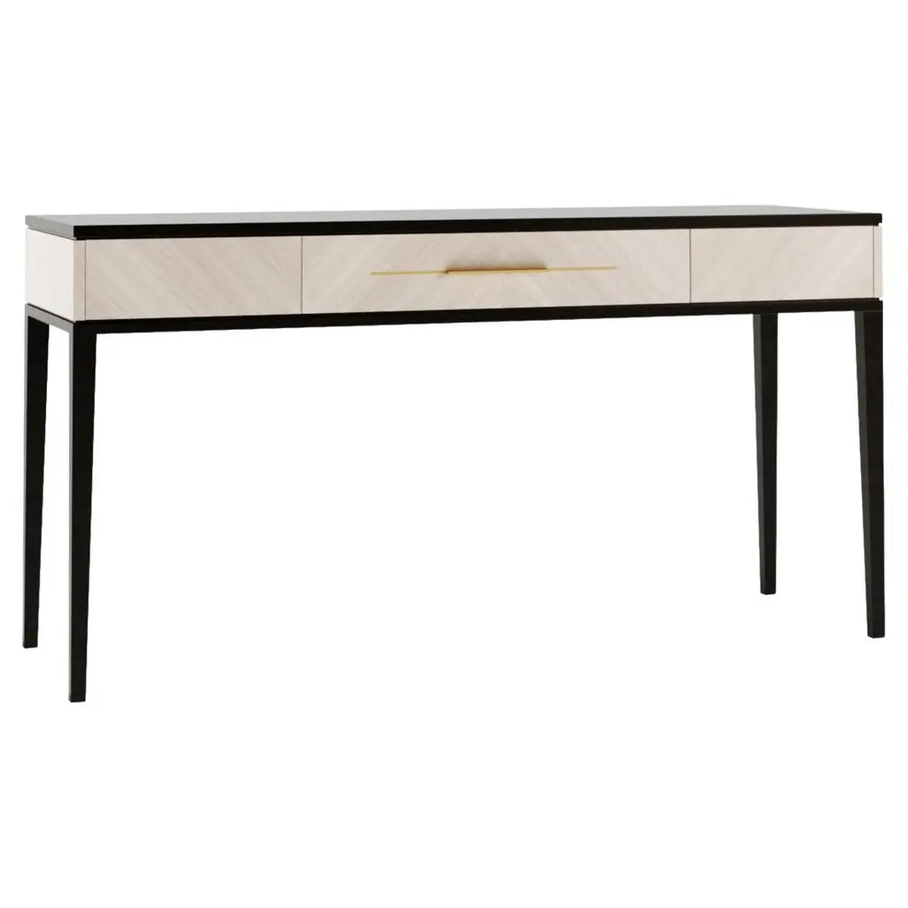 Honoring the craftsmanship and quality of the past, this gorgeous furniture piece is shure to become a modern-day heirloom. Hand-crafted in small quantities, the quality of manufacture, finish, proportion and attention to detail are reminiscent of generations past when anything less would not be tolerated. Solid brass hardware, dovetailed drawers and hand rubbed finishes are just a few of the many benefits of furniture by MODERN HISTORY. Classic, timeless, well-styled and quality is the foundation of exceptional design and the foundation for the furniture of MODERN HISTORY . Built on the ongoing family tradition of Yorkshire House, MODERN HISTORY is a fresh and exciting approach to Fine Furniture and High Design. Features: Stainless Steel, Brass, Black Painted Drawer Boxes Care Instructions: Warm Soap & Water; Dry Please note: Accessories pictured are not included with purchase