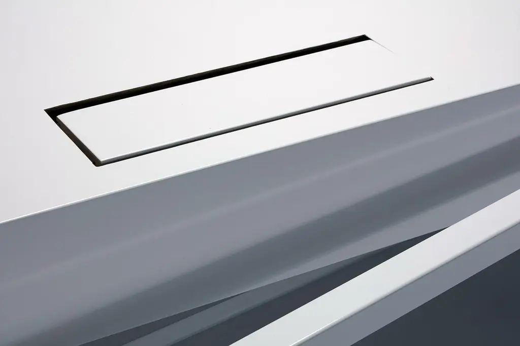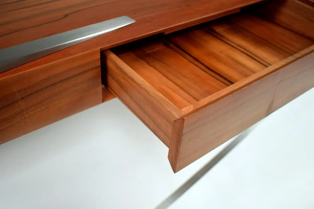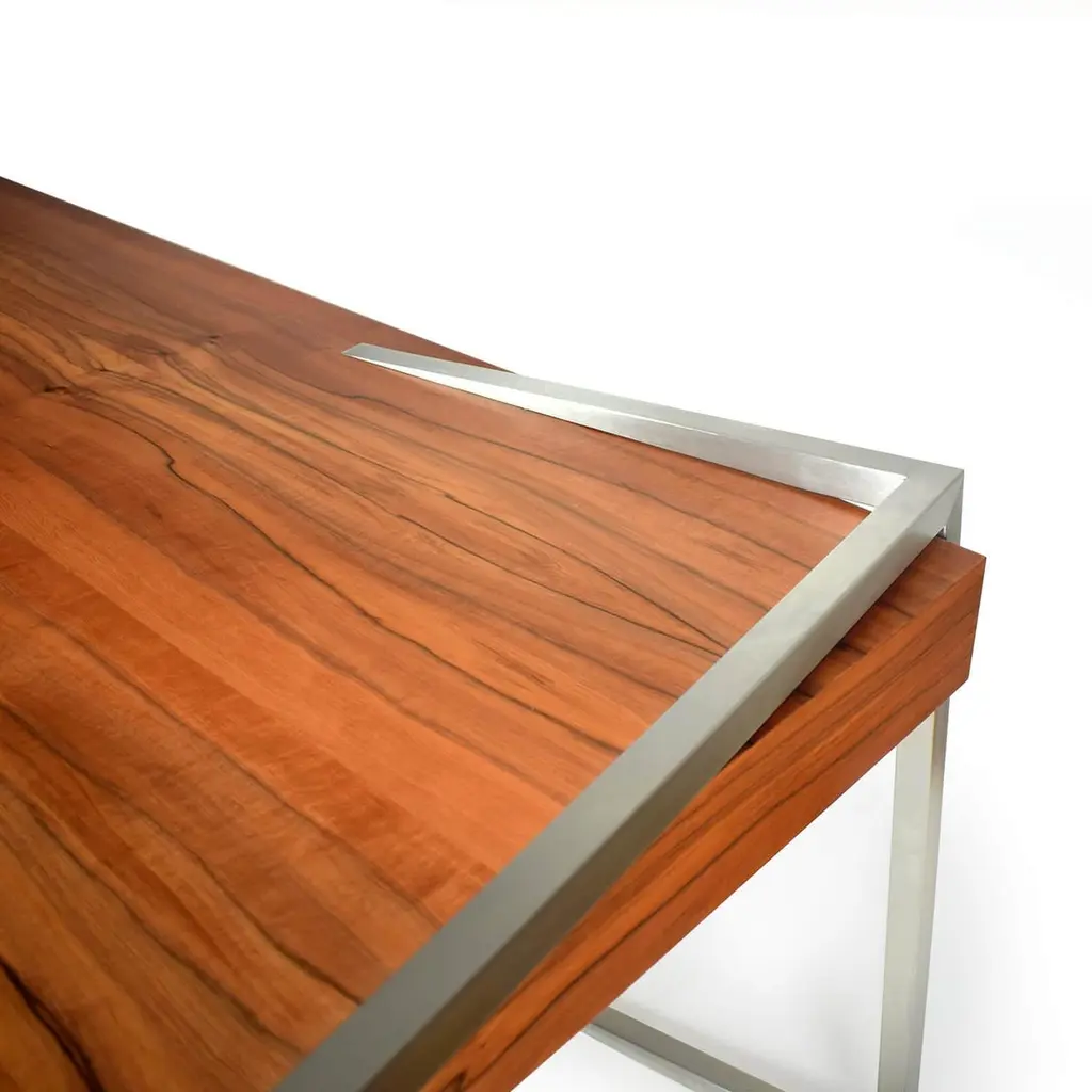 The ExCentric 1.0 Executive Desk is made of white lacquered wood and brushed stainless steel. It is suitable for contemporary executive and home offices and would be the ideal companion to an ExCentric 1.0 Sideboard.Available in two sizes – medium and large. This listing refers to the medium size. Also, it can be made in customized options:Structure: Stainless steel (polished or brushed), brass (polished or brushed), or lacquer colour (any RAL colour).Tabletop: Another kind of wood (walnut, ebony macassar, tineo, black oak, ironwood) or lacquered wood (any RAL colour).Dimensions: Large Desk (110 x 210 x 77 cm - 43,3 x 82,7 x 30,3 in).Extra features, such as USB plugs, electrical plugs, and wireless phone chargers, are available upon request (please contact us to find out the price difference).The desk houses two drawers. Assembled piece. Given the weight and size, it will be delivered in a wooden box packed in bubble wrap.In 2016, it won an "A' Design Award" in the "Furniture, Decorative Items, and Homeware Design" category.This piece is entirely made in Portugal and manufactured artisanally. The author carefully executed or supervised every process step in a small workshop context.Labour of love from Portugal.Designer/Author - Joao Faria/Emotional Objects.Manufacturer - Joao Faria/Emotional Objects.At Emotional Objects, we don't follow trends or fashion. Instead, we create distinct and timeless objects with solid ideas and concepts. Every Emotional Object has a meaningful story behind it. Made to last for generations, we proudly see our objects as future furniture classics that will stand the test of time.Working in Portugal with the best artisans, Joao Faria's work is difficult to distinguish between functional and fine art. He uses the finest materials and techniques, but most importantly, he only makes pieces he would want for himself.Art Furniture, Unique, Tailored, Emotional, Truly Yours.