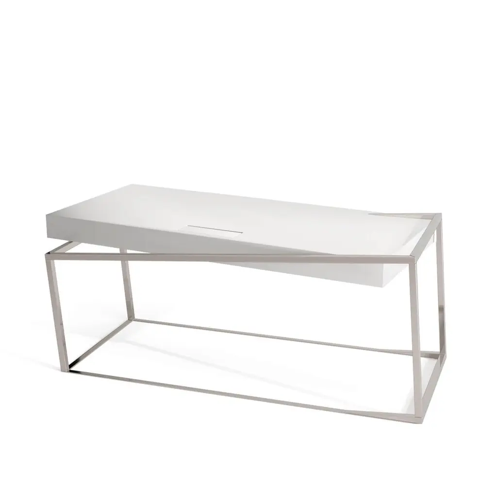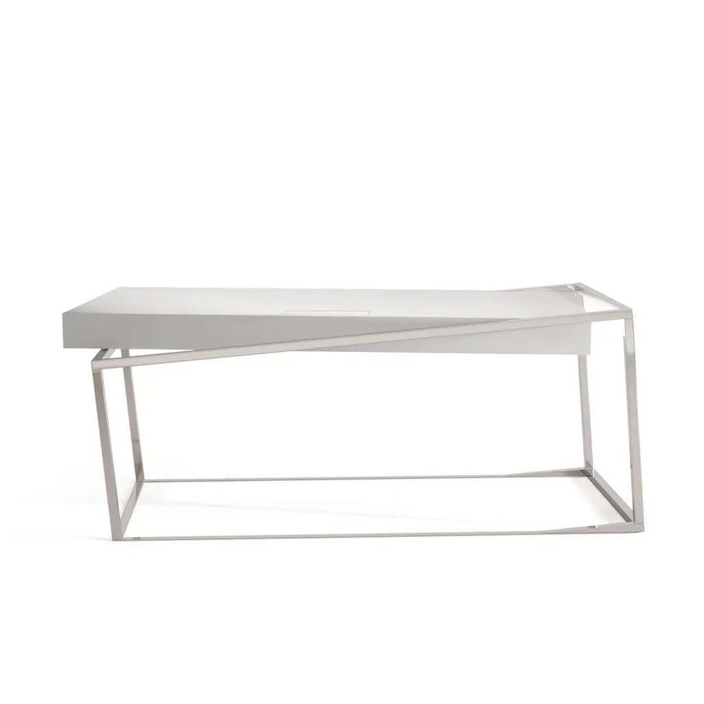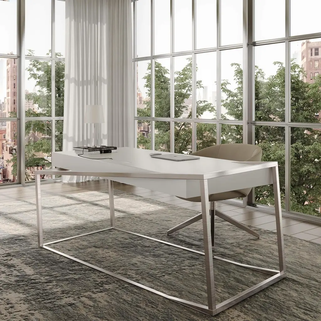 Modern Home Office Writing Executive Desk White Lacquer Brushed Stainless Steel