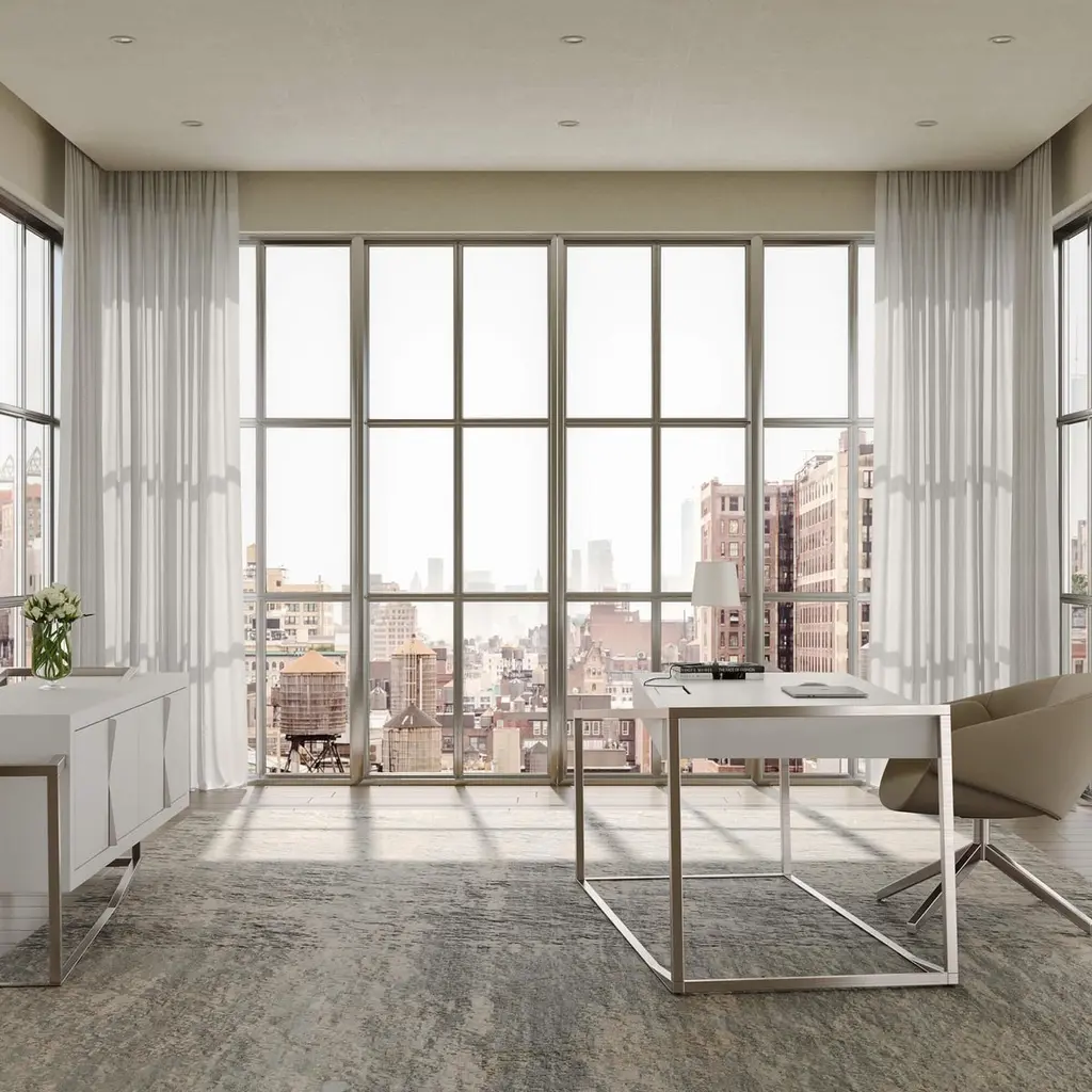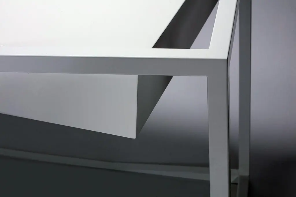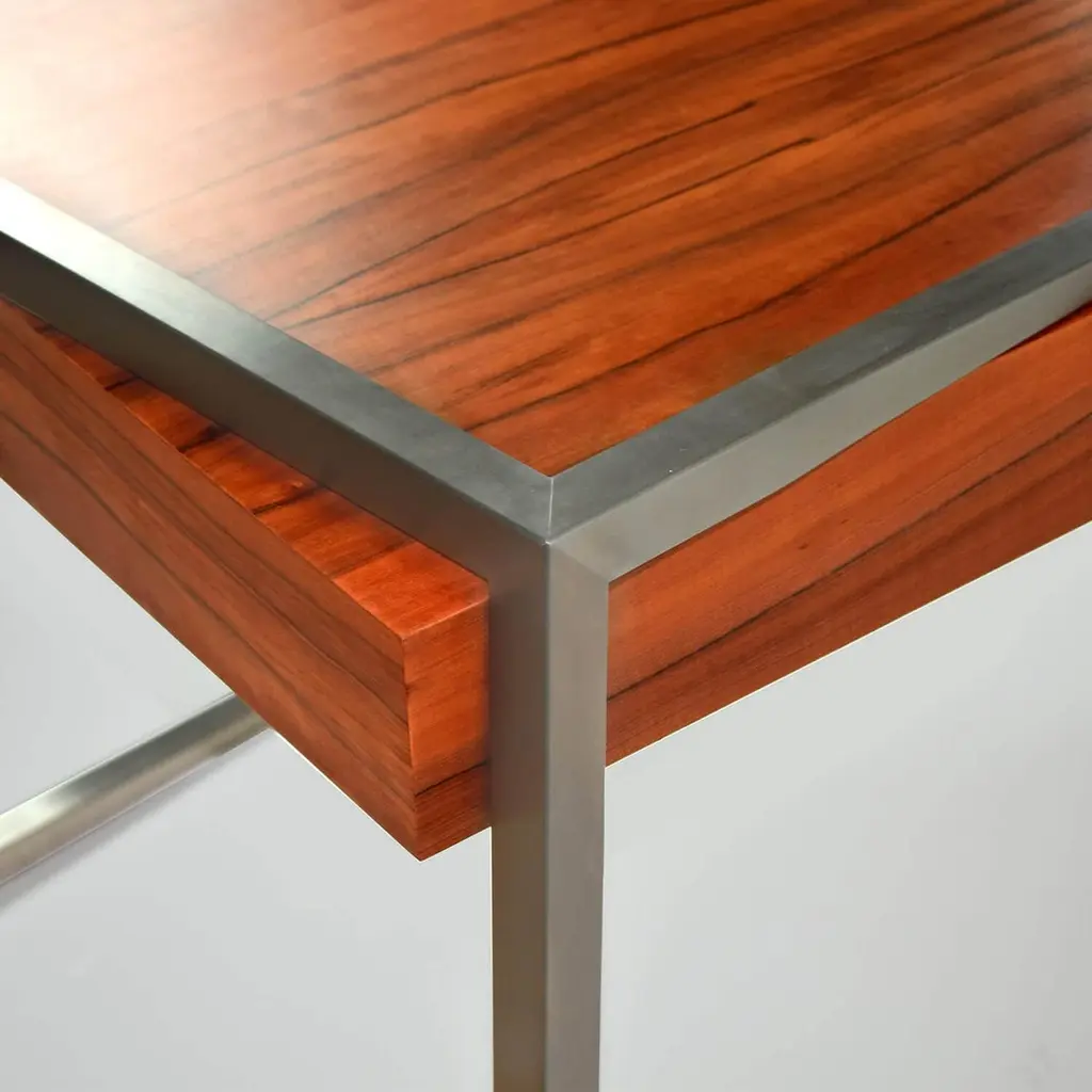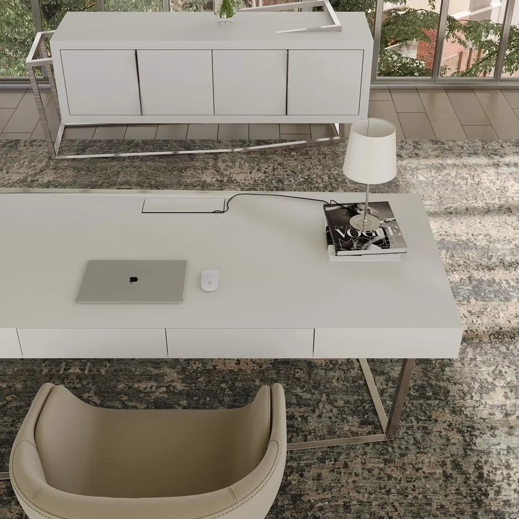 Modern Home Office Writing Executive Desk White Lacquer Brushed Stainless Steel