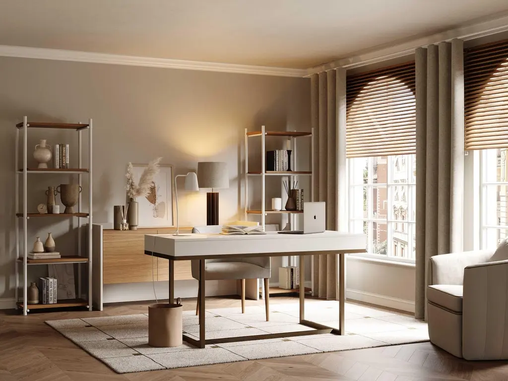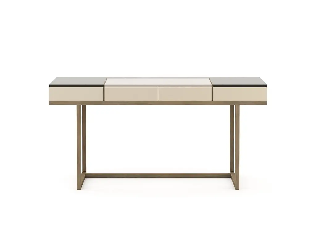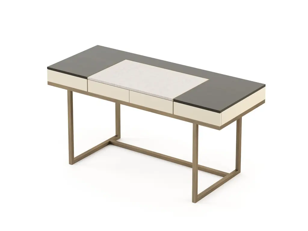 The Manhattan collection presents itself with a straight and rhythmic silhouette on both horizontal and vertical lines, invoking the constructions in height, provided by the technical/technological developments of modern architecture. The combination of various natural materials, with details in cream suede fabric delivers a modern and elegant style. With classic-inspired lines, the Manhattan desk adds a refined atmosphere to your work area. The two drawers offer hidden storage space. A design piece of excellence, the Manhattan desk represents a city glamour that reveals practicality and functionality needed for a productive moment. The high quality of Stylish Club's finishing materials evokes the essence of our brand. The high gloss lacquering of the table top contrasted with the brushed brass of the structure are the mirror image of the irreverence of our pieces.As the product can be personalised, the image of the presentation is merely illustrative.