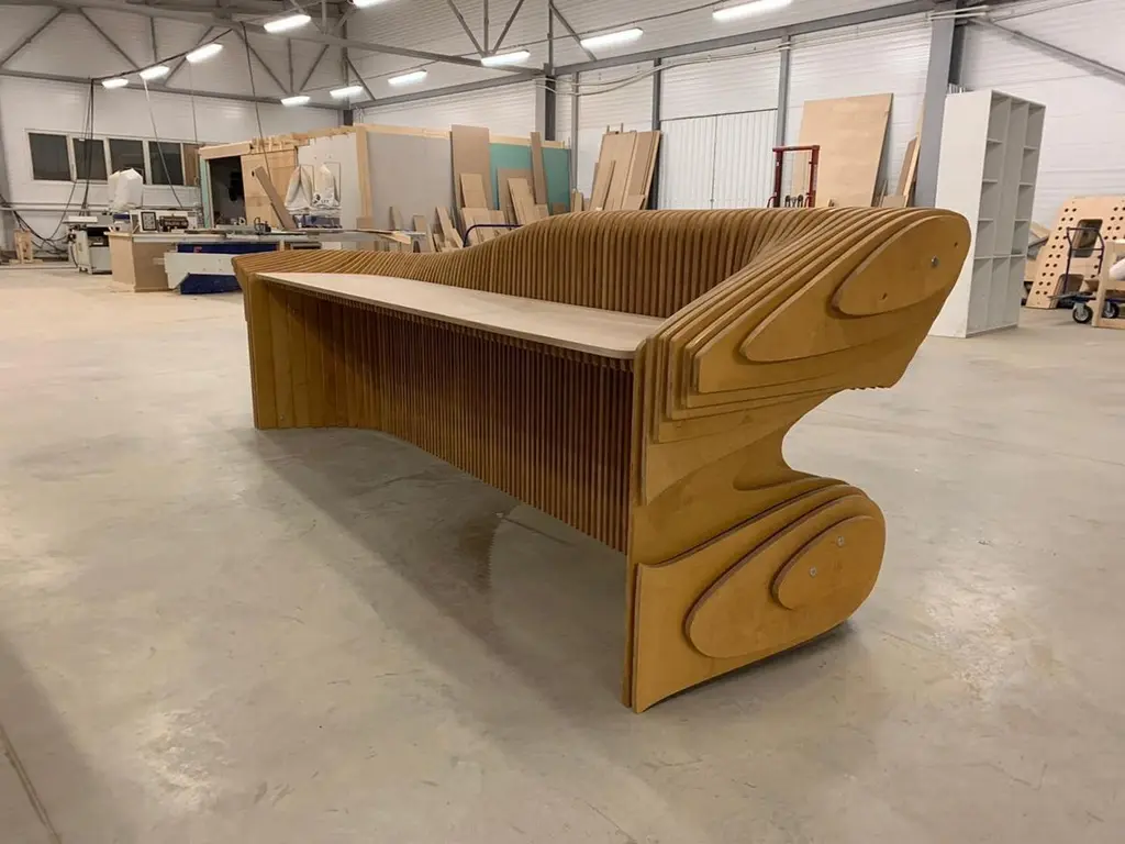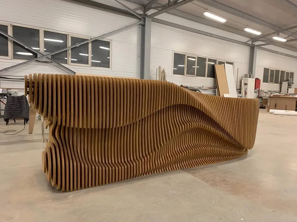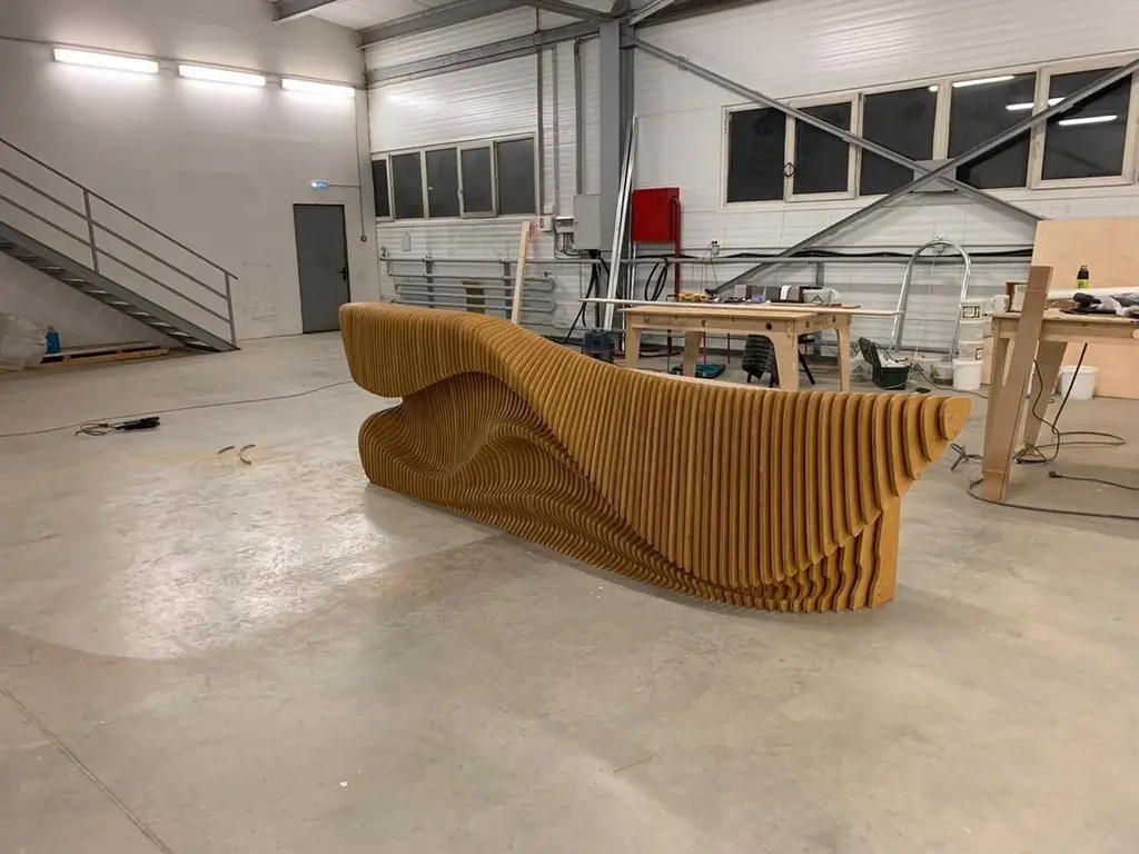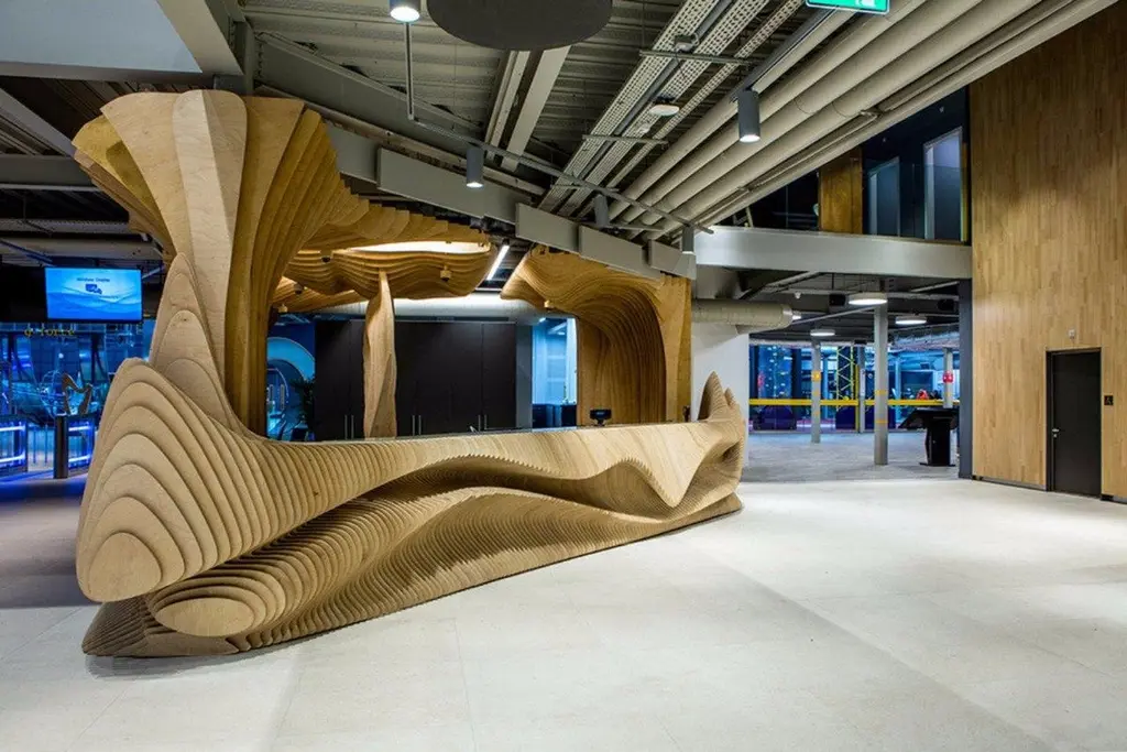 Modern Sculptural Reception Desk In Plywood - Cnc Parametric Design For Office