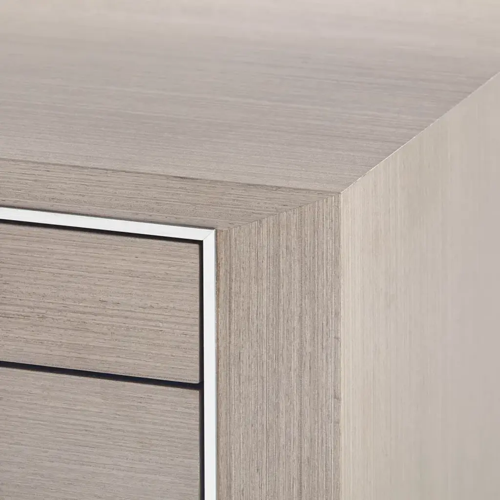 The Morris Collection marries strength and elegance in a French-influenced design to create, in a word, "gentility". Sturdy legs taper-down to elegantly Nickel finished sabots with matching accents encircling the drawers. As with most of our collections, the drawer interiors are stained and outfitted with soft-closing glides.