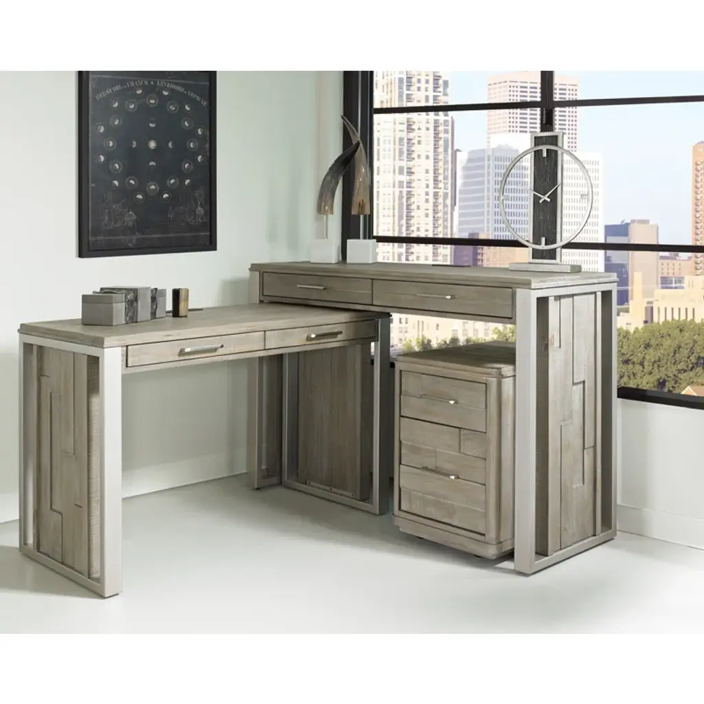 Musso is a tactile and organic collection with a rustic sophistication. A high-low planking effect on the surface of select pieces gives a tactile and dimensional appeal, along with the rustic distressing on the solid Pine construction. The Hazelwood finish, a mixture of taupe and gray earth tones, reinforces the organic and textural appeal.