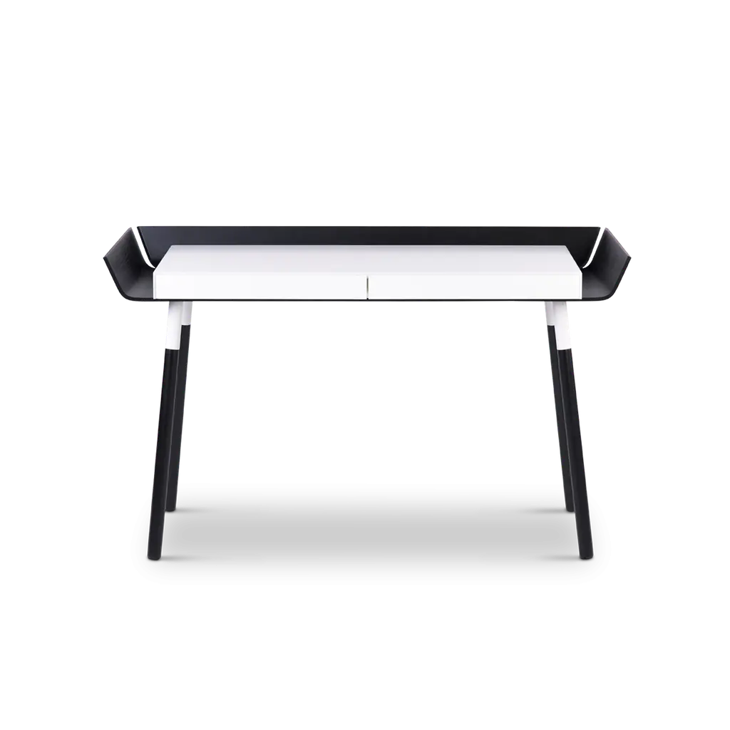 More compact than the larger version, this EMKO writing desk is ideal for creative people looking for an elegant and practical work table. The desk has been designed by Inesa Malafej as a final project for her bachelor’s degree at the Vilnius Academy of Arts. It features a smaller yet spacious working area, with curved edges maintaining items secure at all times and also providing a convenient space to store any devices for later use. Adequate spaces are left for cables and wires, while two drawers can hold a laptop, writing tools, or art supplies. A stylish addition to any room, this compact and lightweight desk comes with folding legs, so it can be easily moved around and it will save storage space. The light brown and white tones will also complement any interior design scheme.