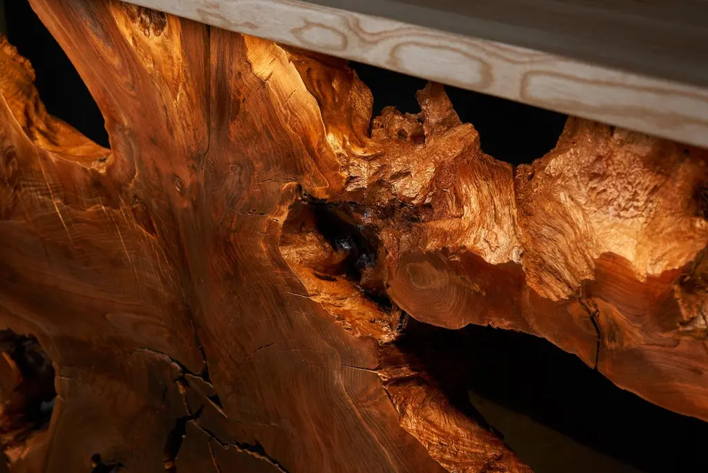 Natural Handmade Walnut Root Reception Desk And Bar Counter Led Backlighting